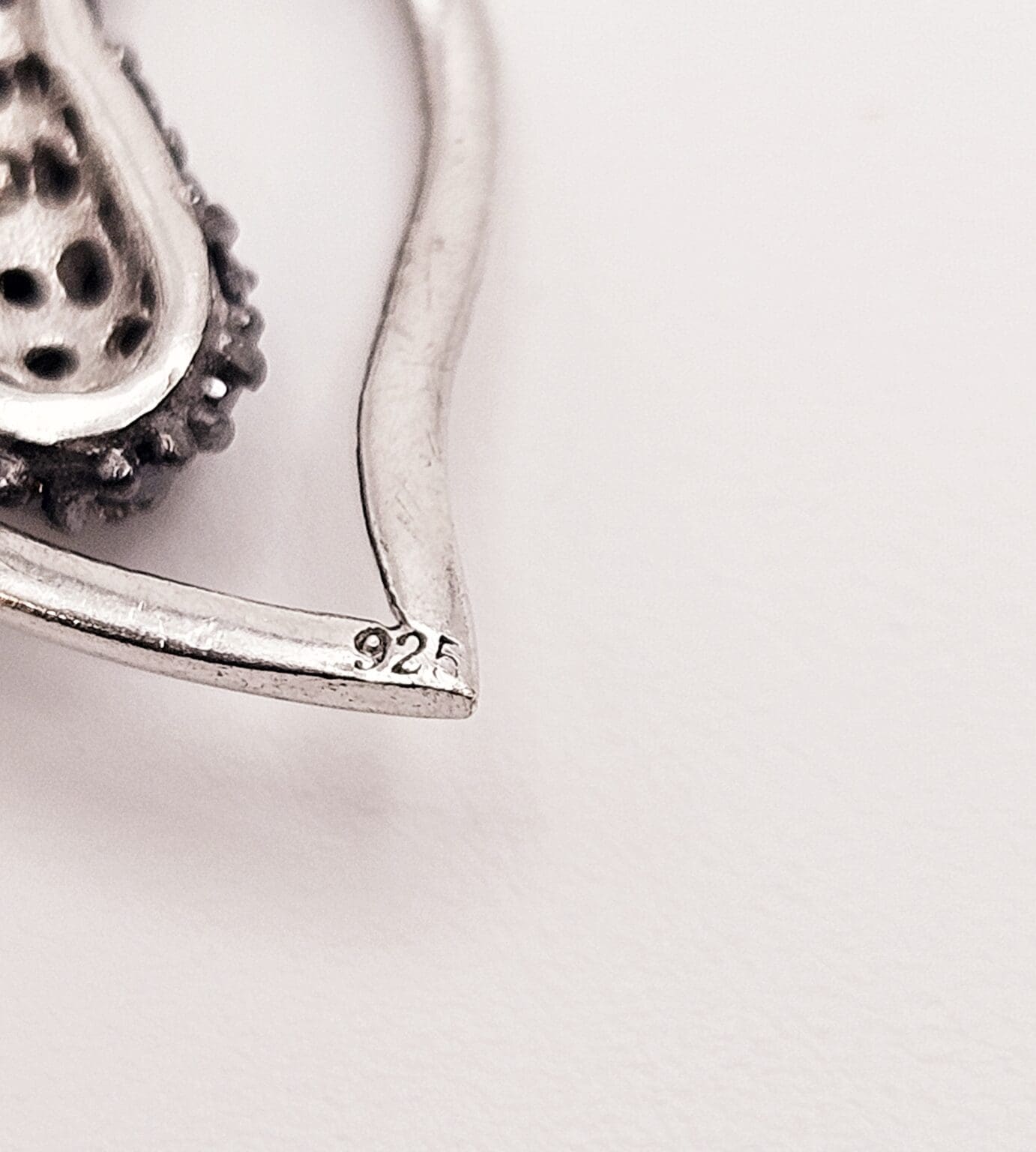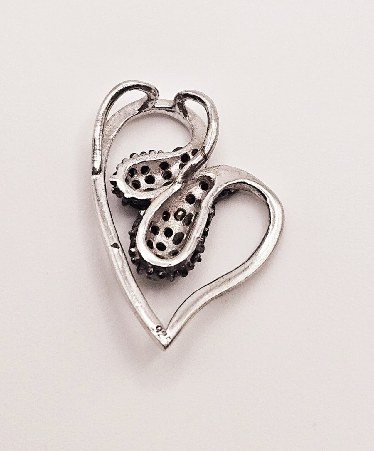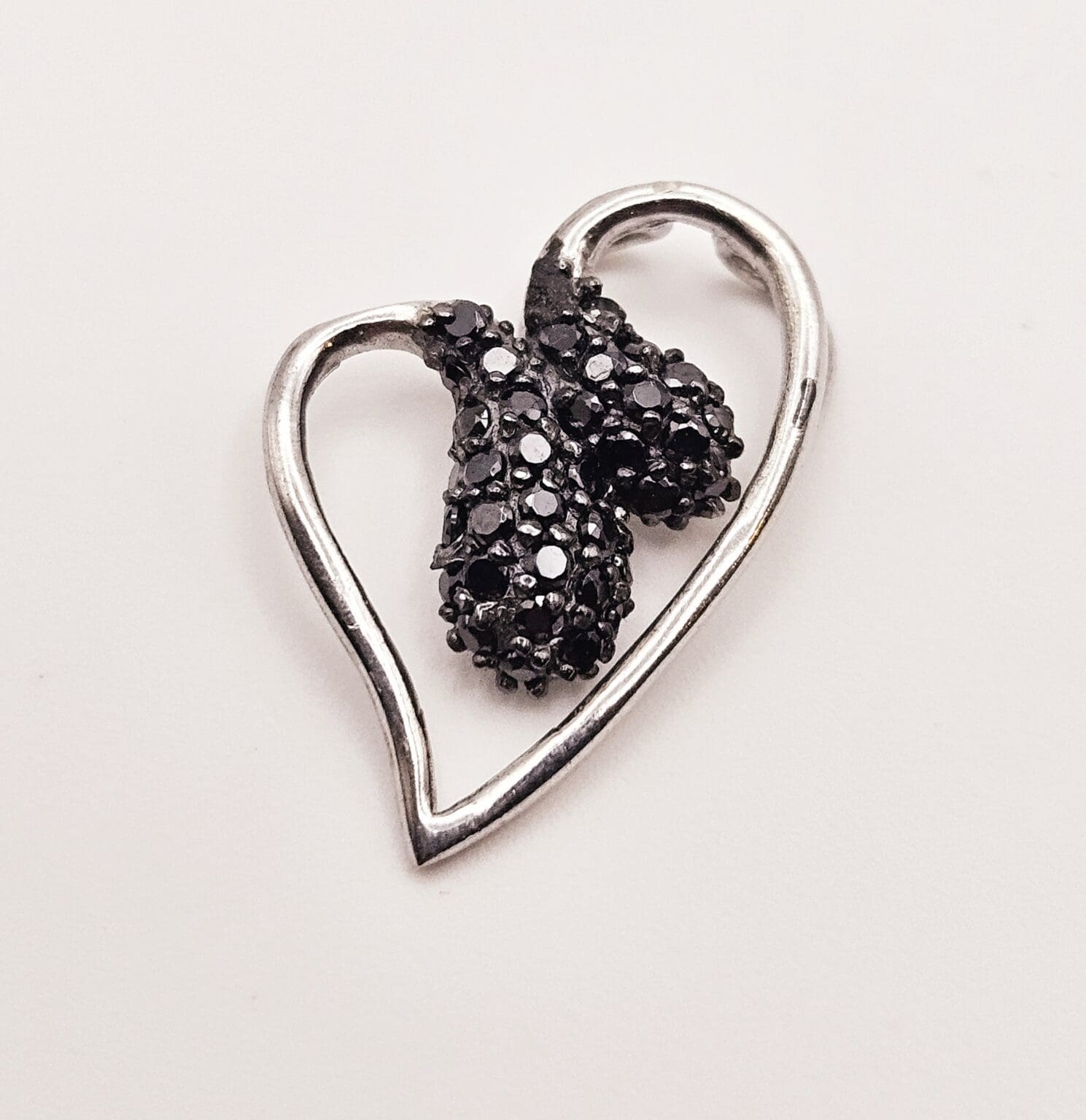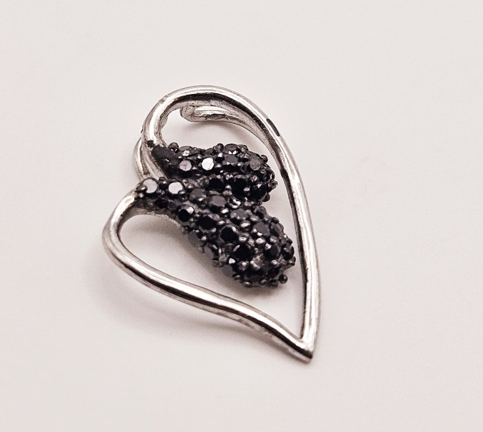 Beautiful sterling silver black spinel heart pendant. Stamped 925.