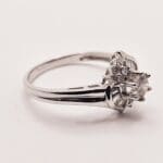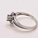 18K solid white gold 1 carat total weight genuine diamond cathedral style ring with round cut center stone and baguette and round cut accent stones
