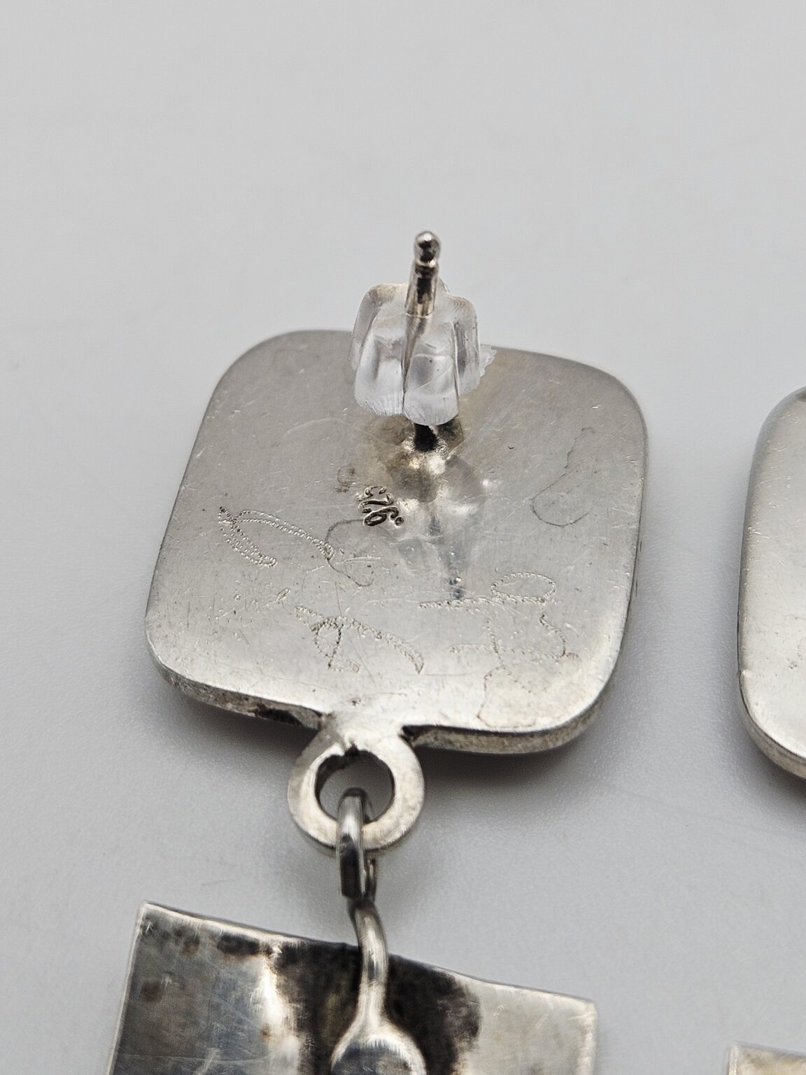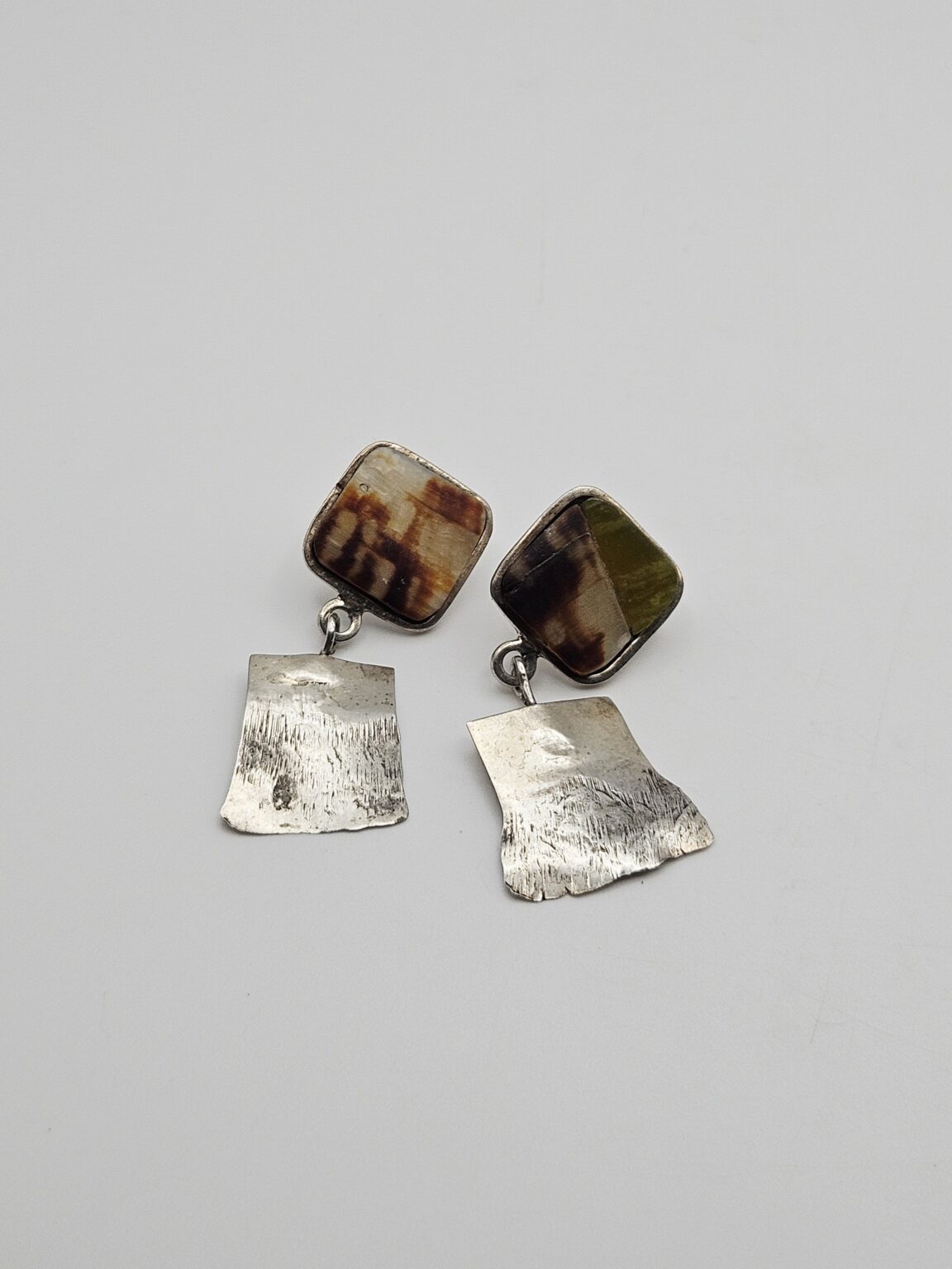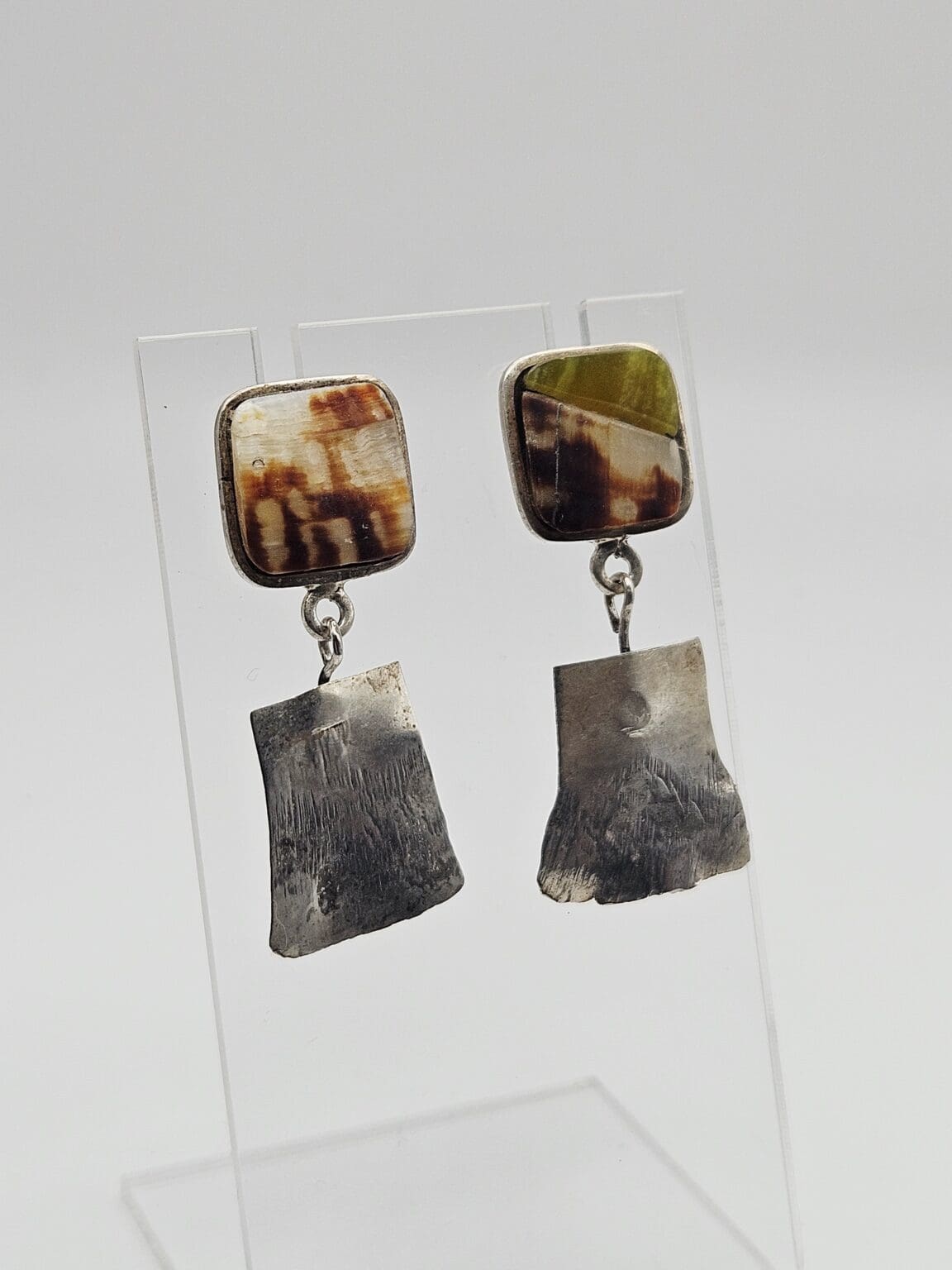 Beautiful Consuelo Campos Sterling Silver Vintage 1997 Natural Shell Panel Dangle Earrings. Stamped Consuelo 97 925