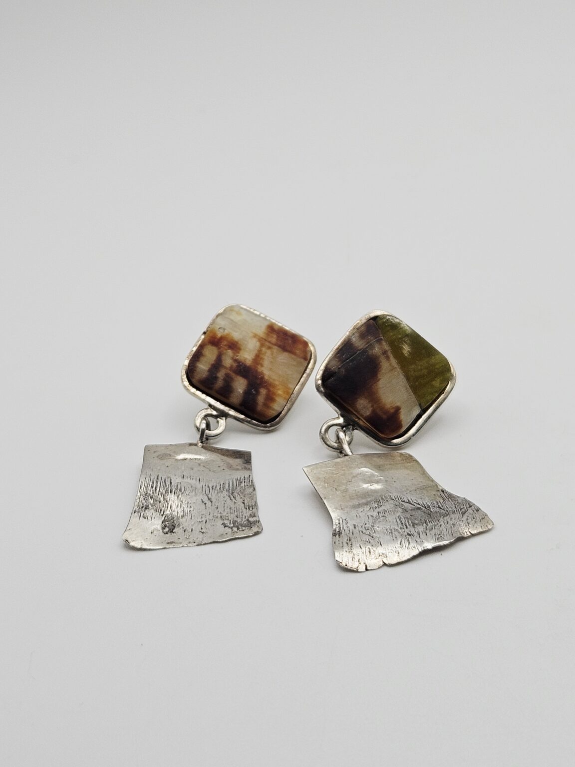 Consuelo Campos Sterling Silver Vintage 1997 Natural Shell Panel Dangle Earrings