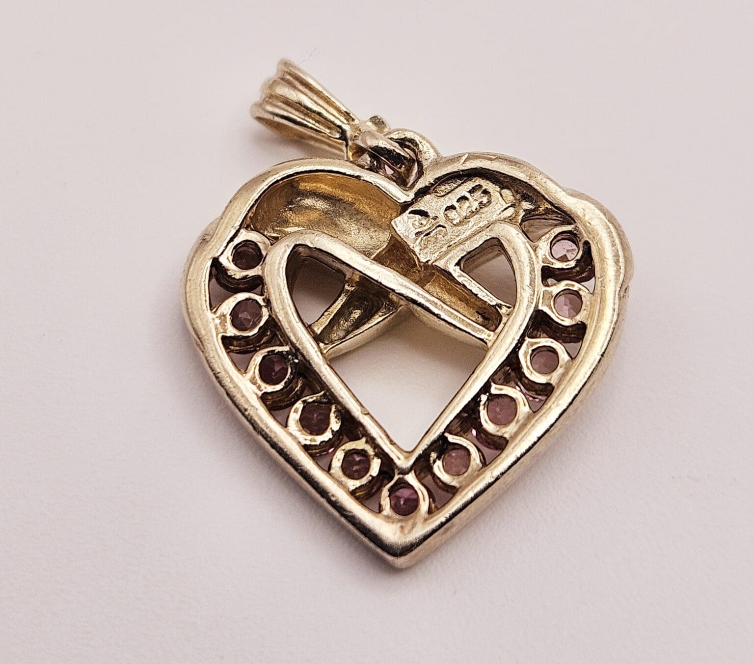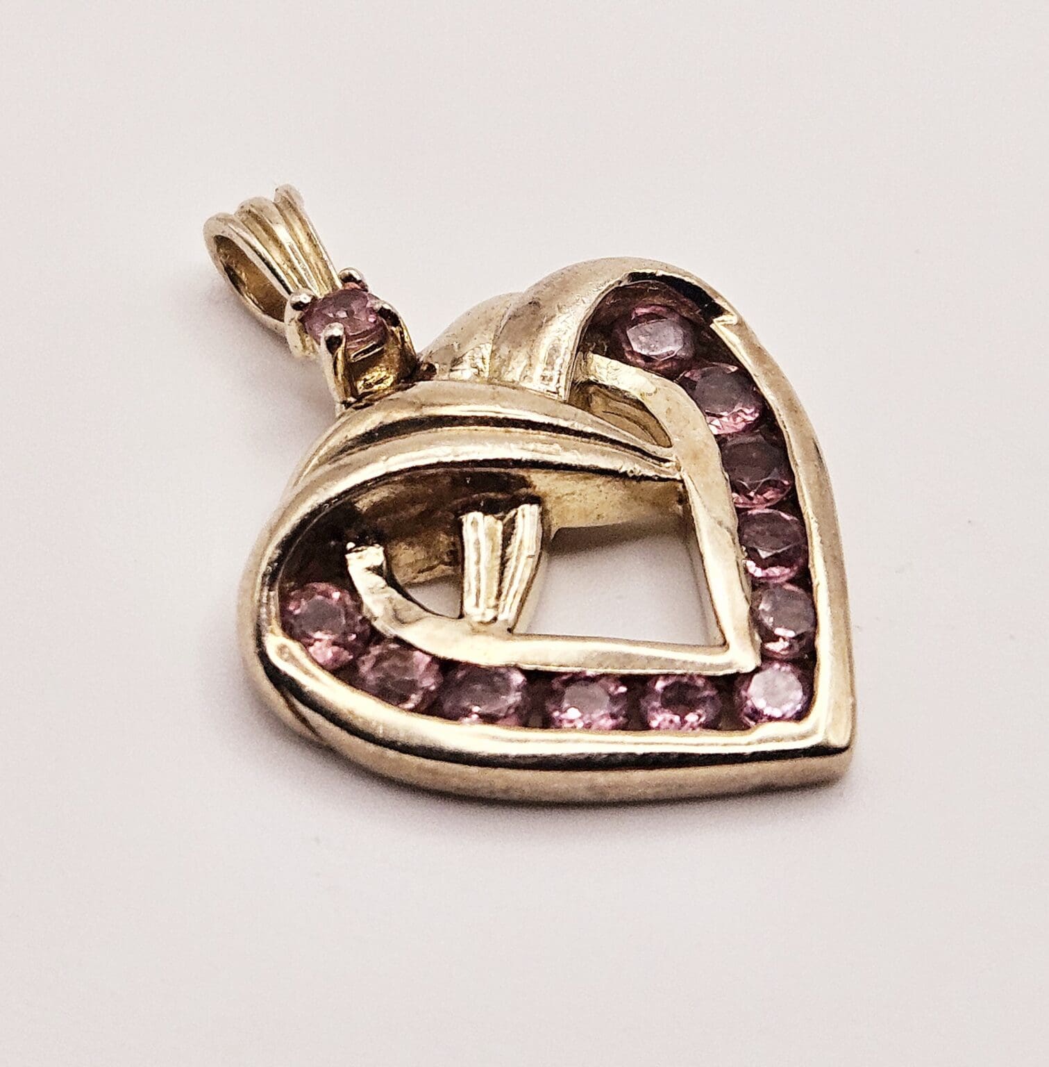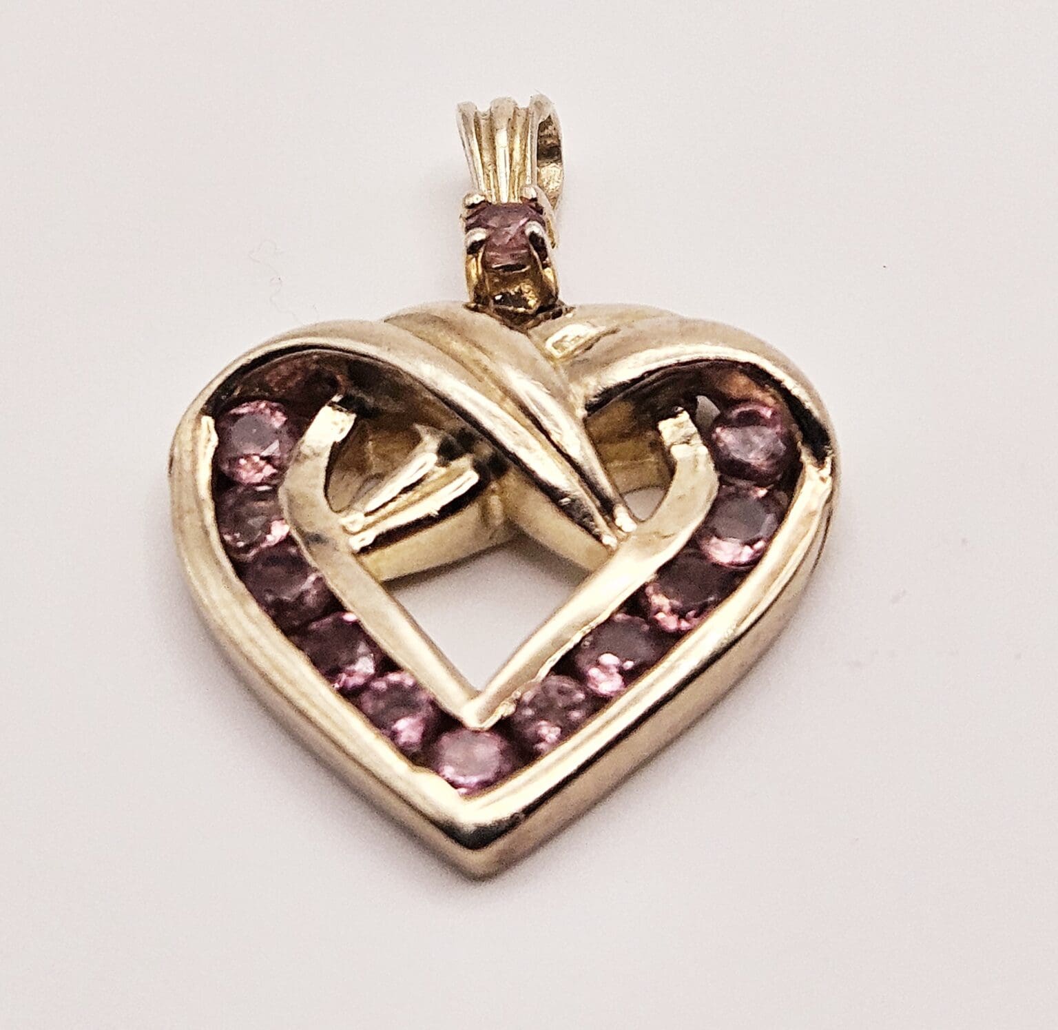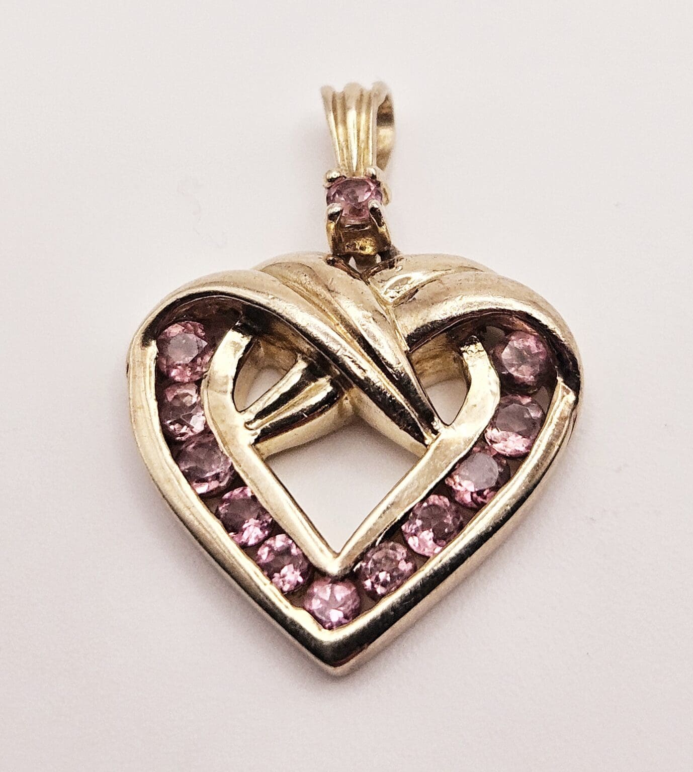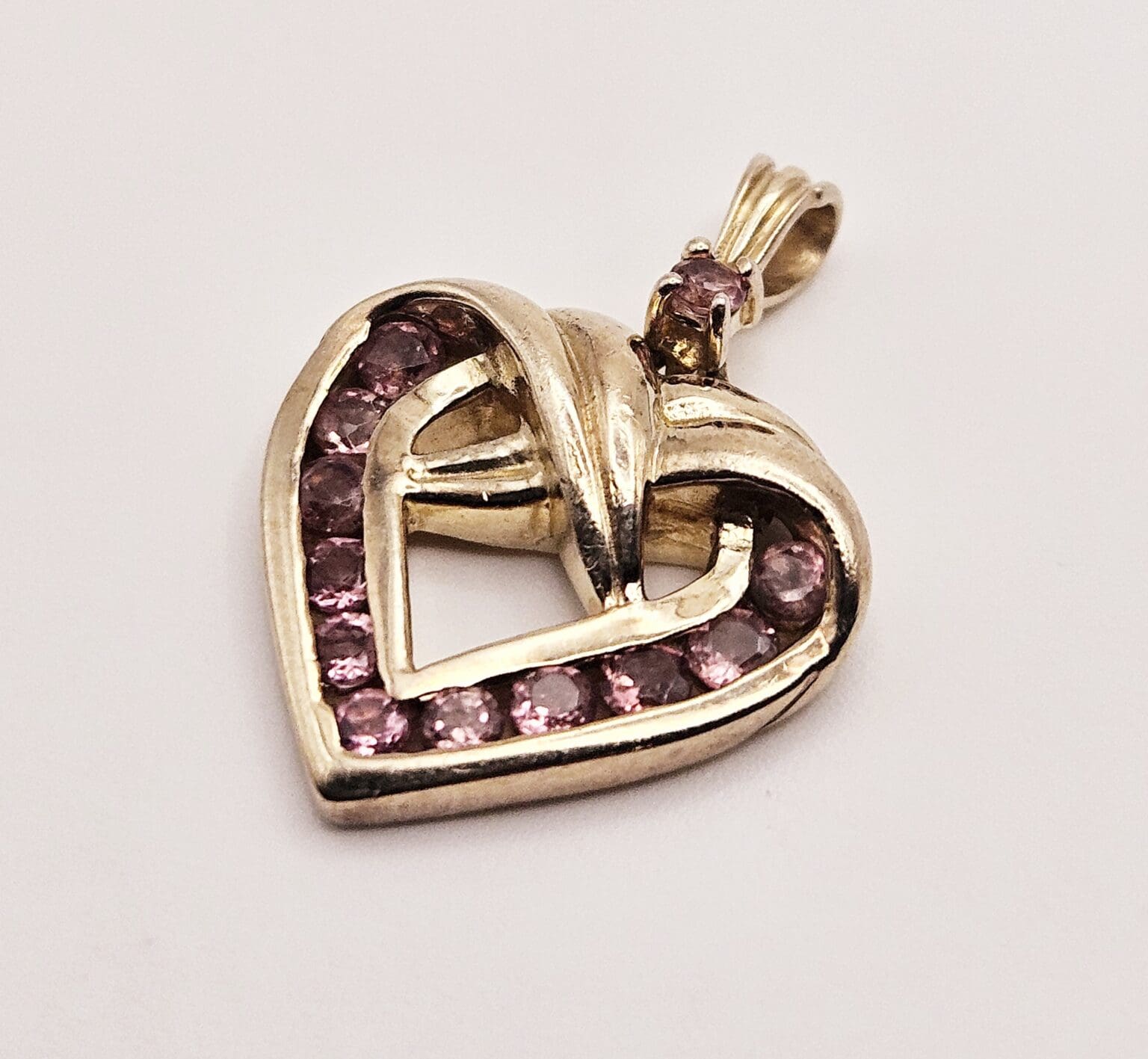Beautiful Danbury Mint sterling silver vermeil pink tourmaline heart pendant. Stamped with Danbury Mint hallmark 925.