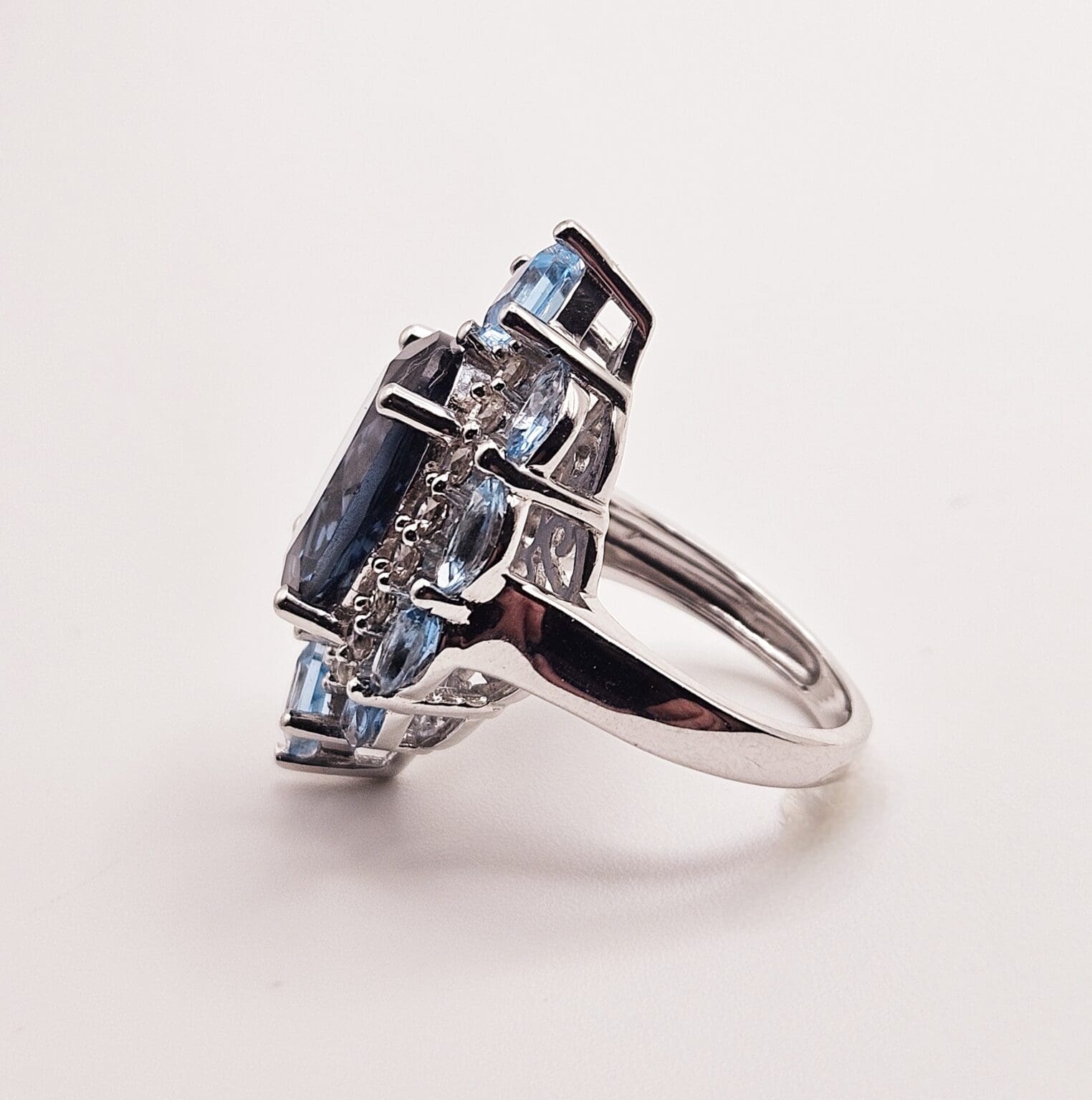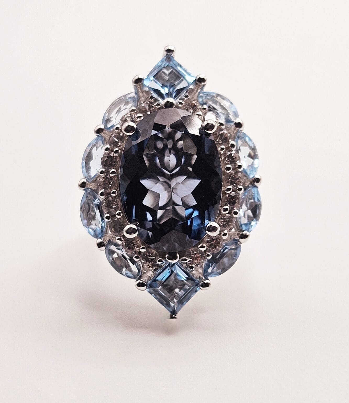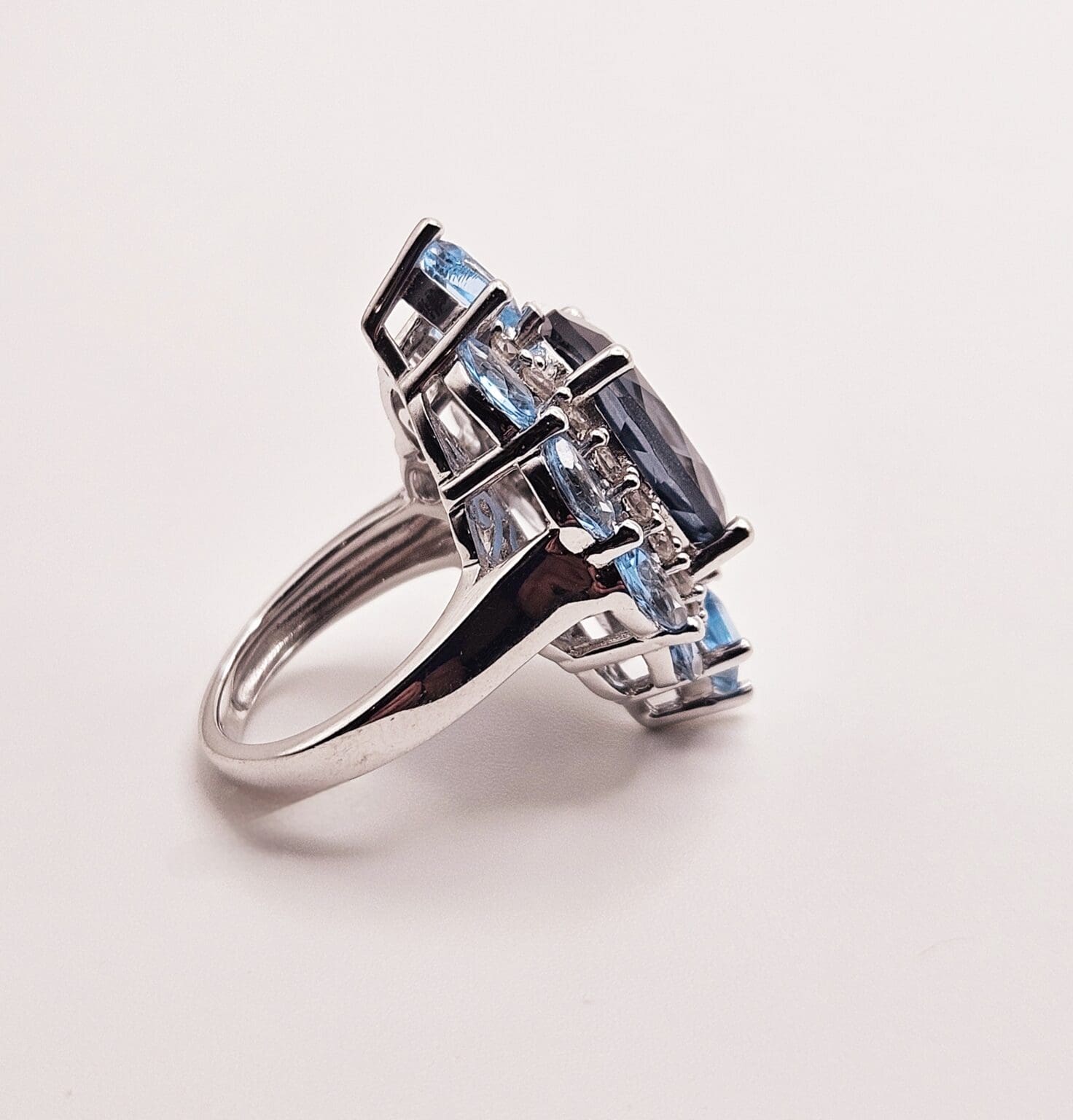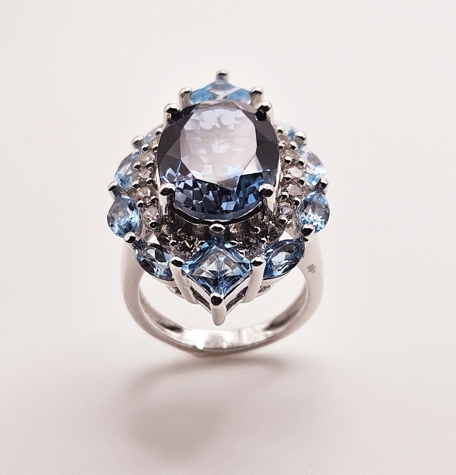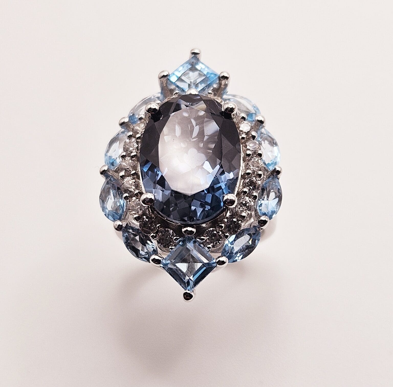 DK sterling silver over 5 carat oval cut London blue topaz ring