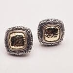 Effy sterling silver and 18k solid gold hammered post back earrings