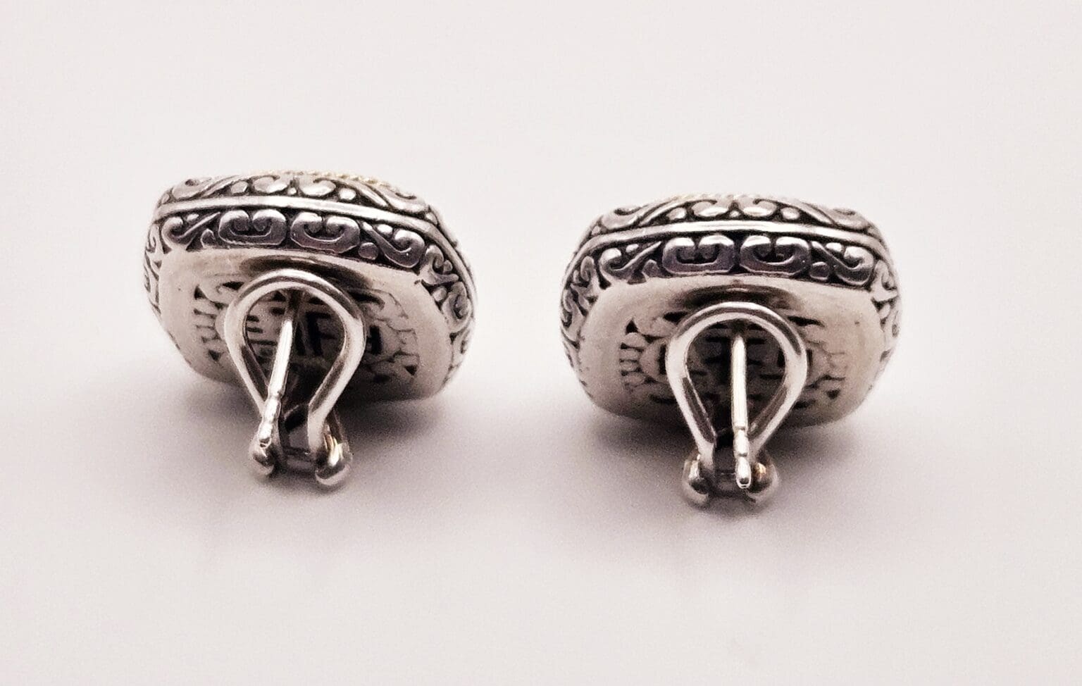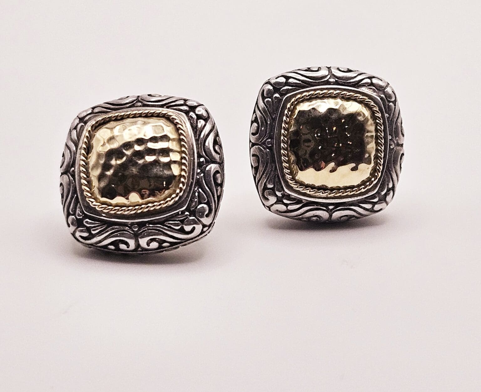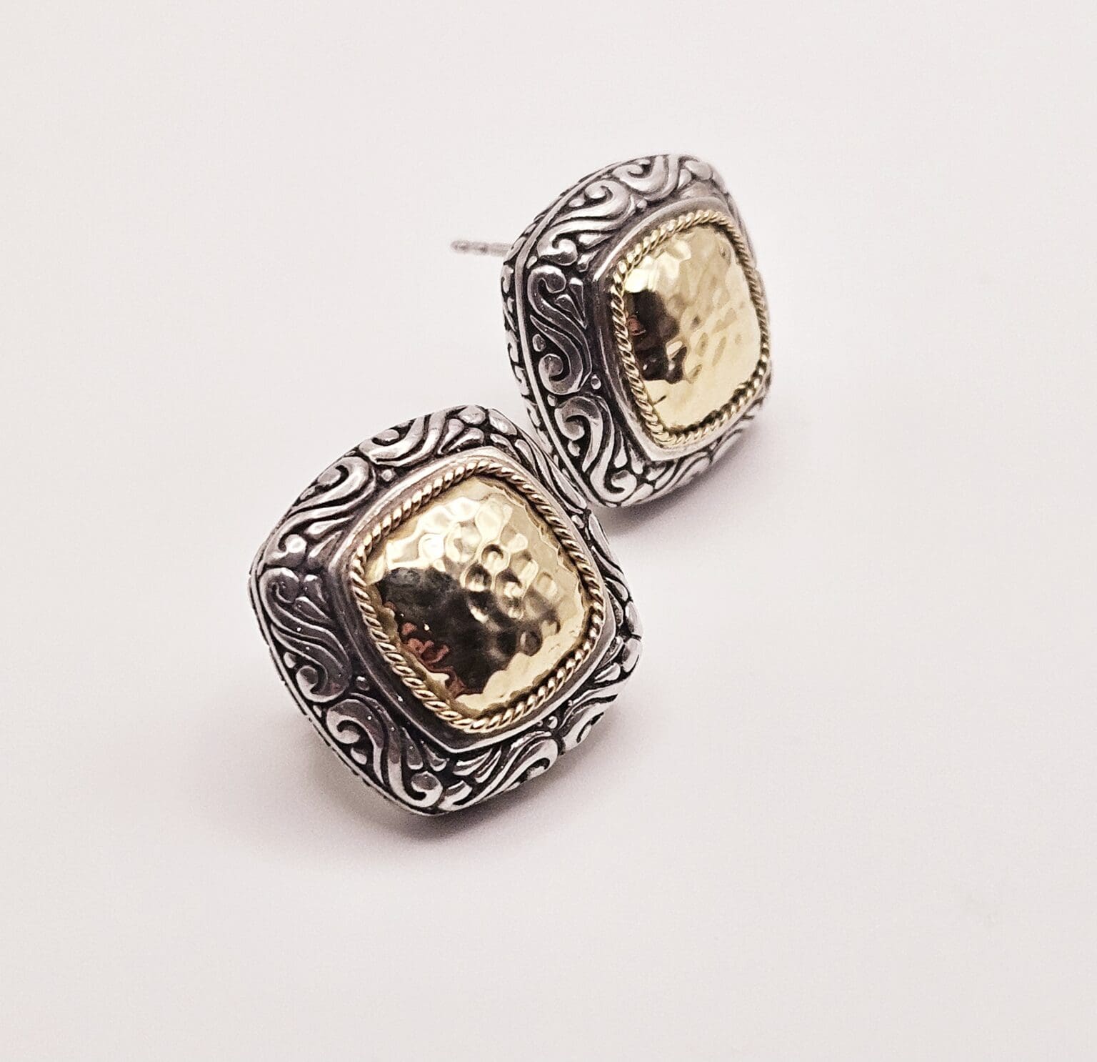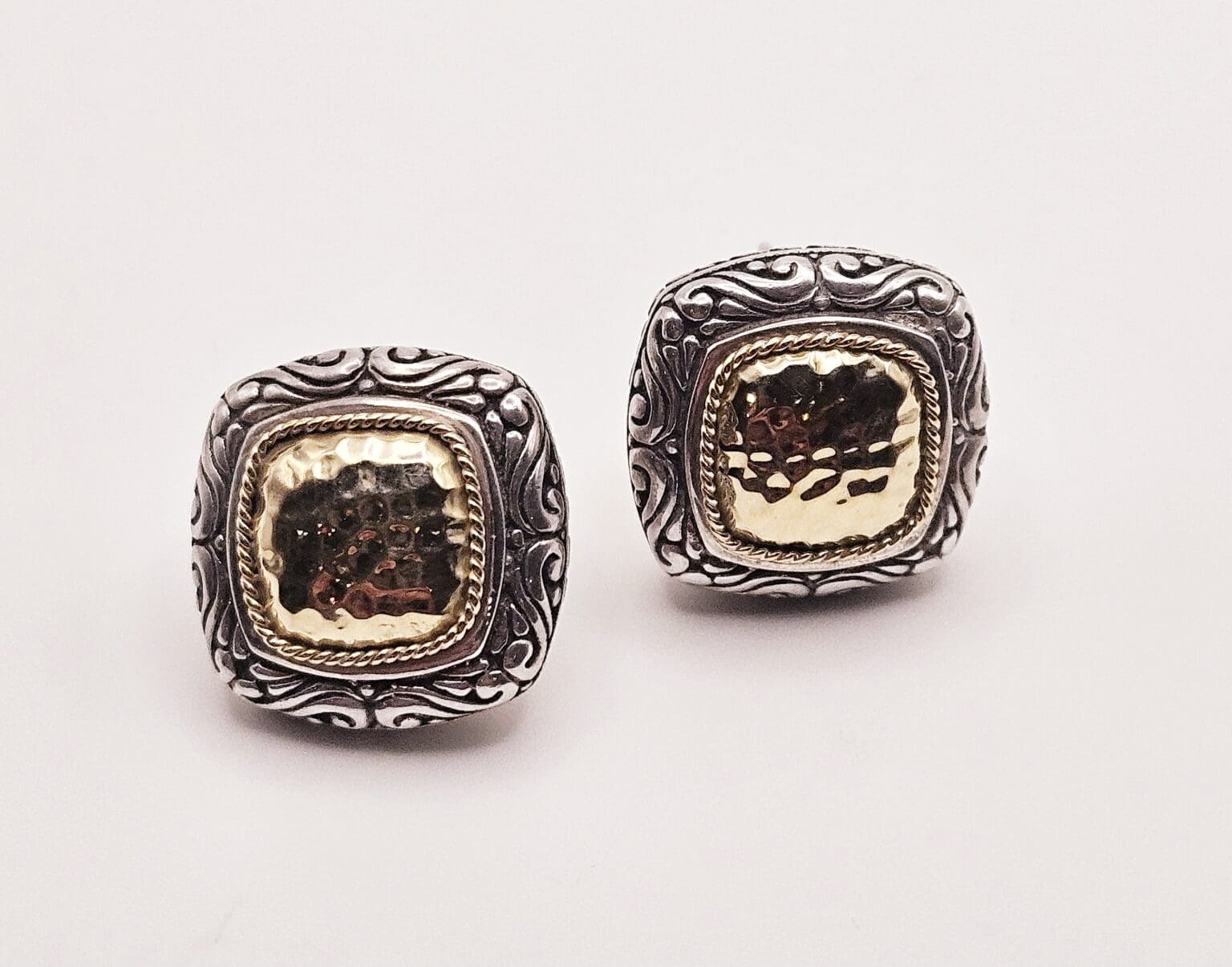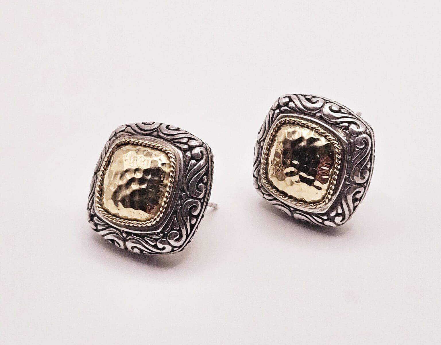 Effy sterling silver and 18k solid gold hammered post back earrings with security back. Stamped BH 18k 925.