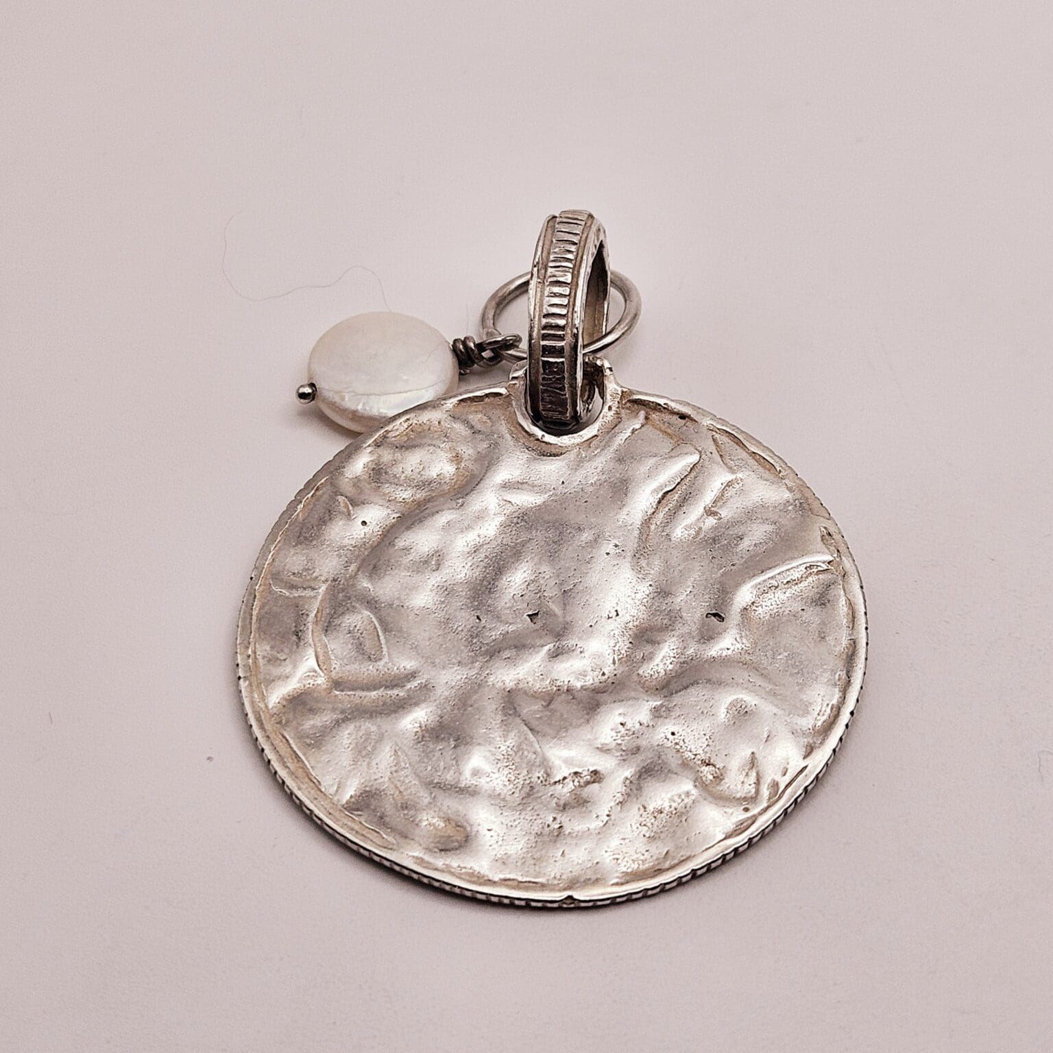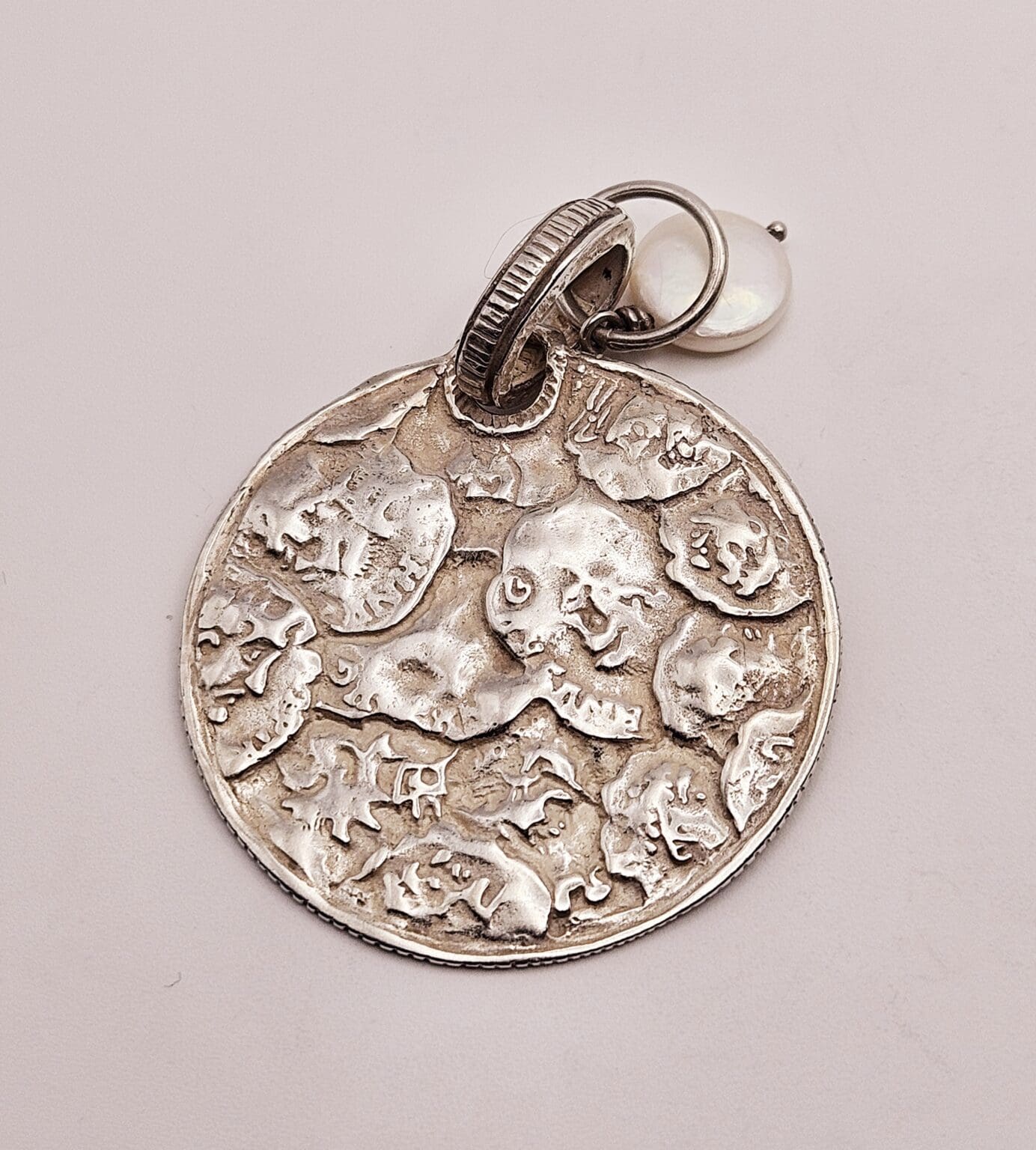 Gorgeous Silpada sterling silver reversable circle pendant with pearl accent. Stamped with silpada hallmark 925.