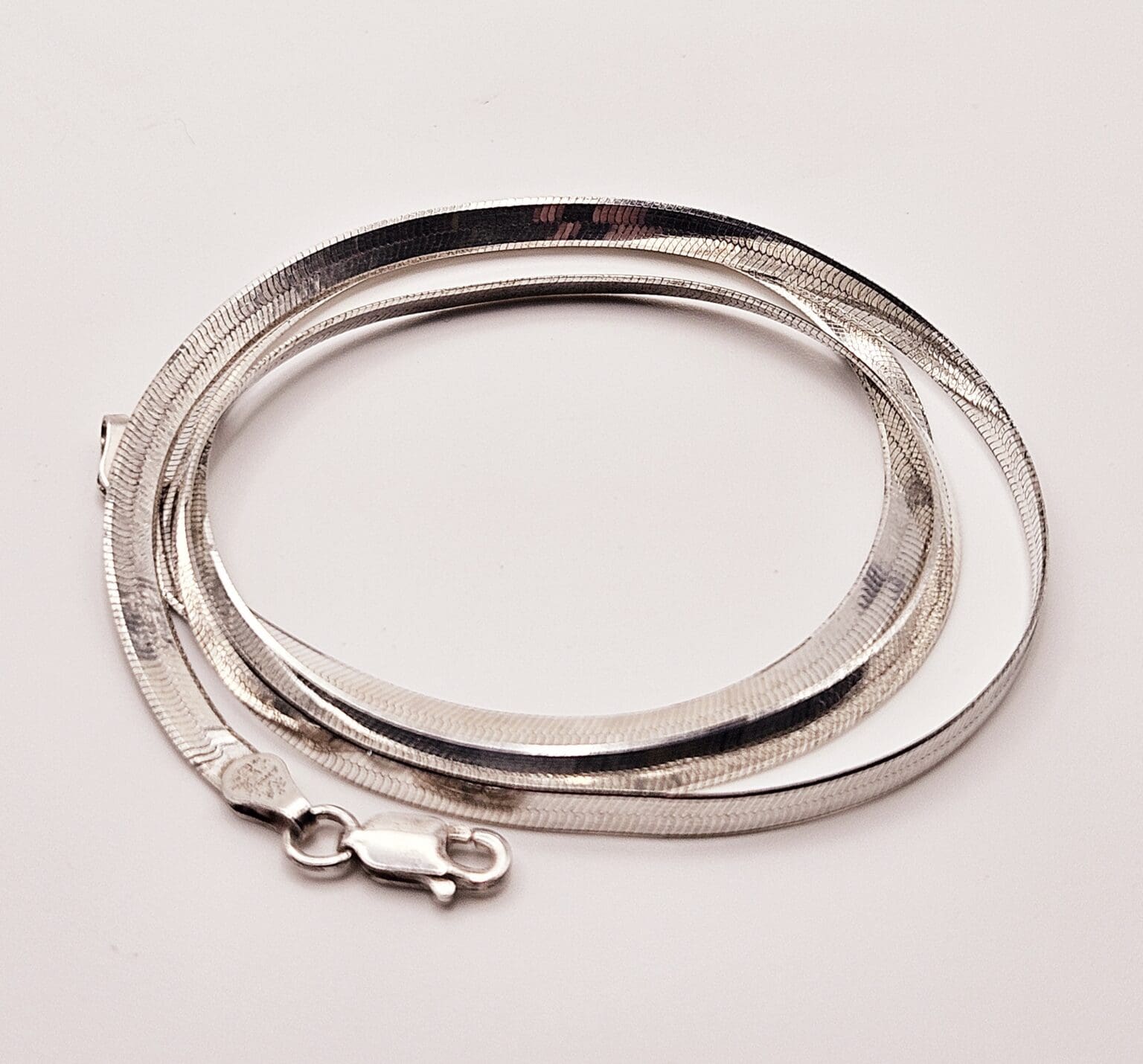 Beautiful sterling silver 7mm herringbone necklace. Stamped 925.