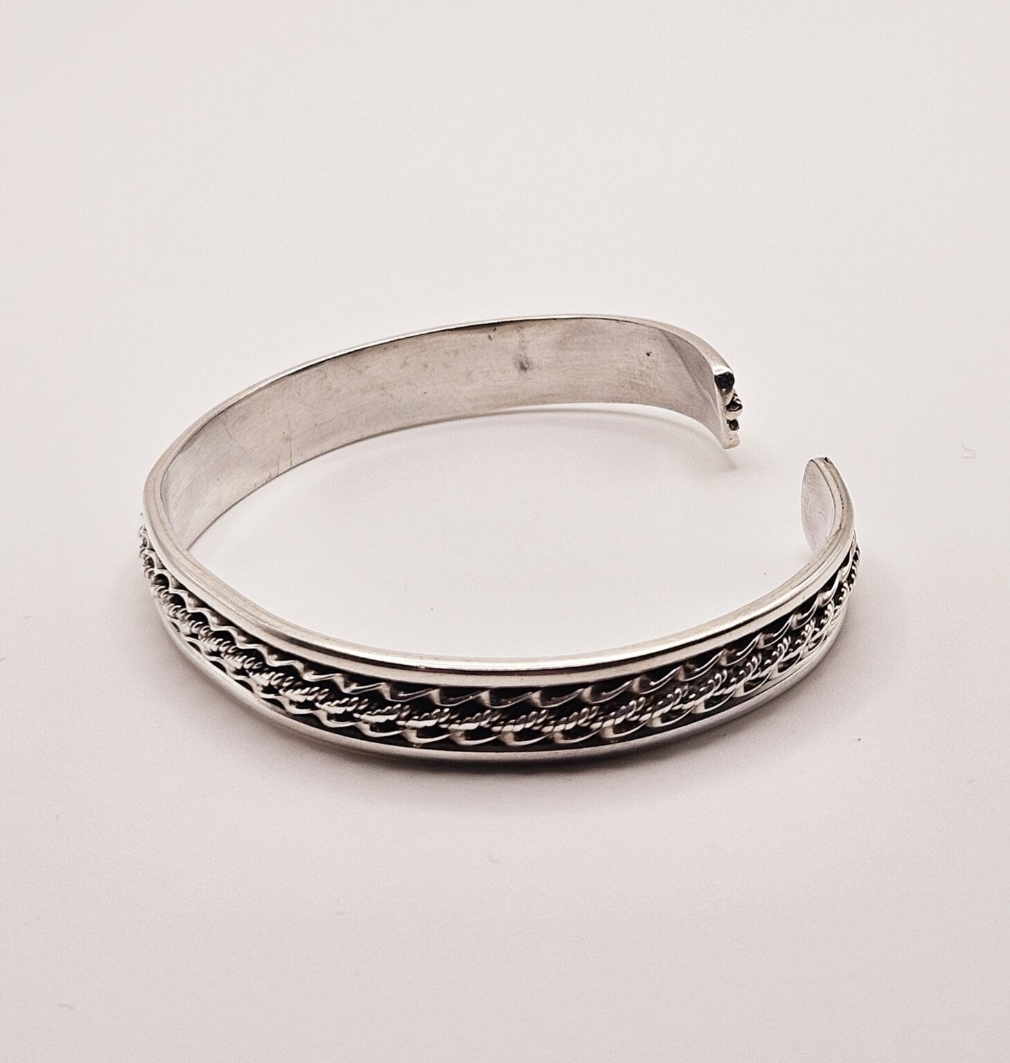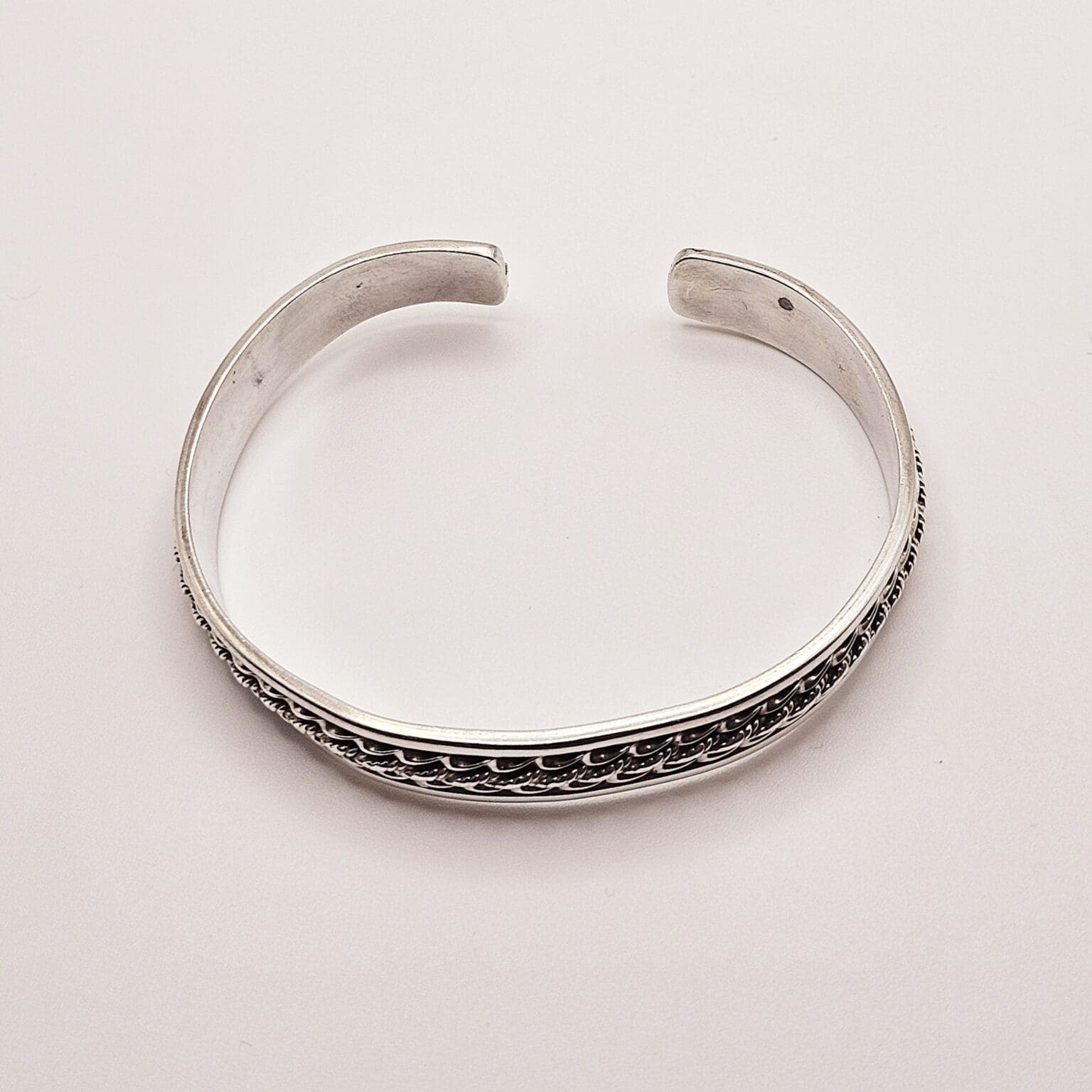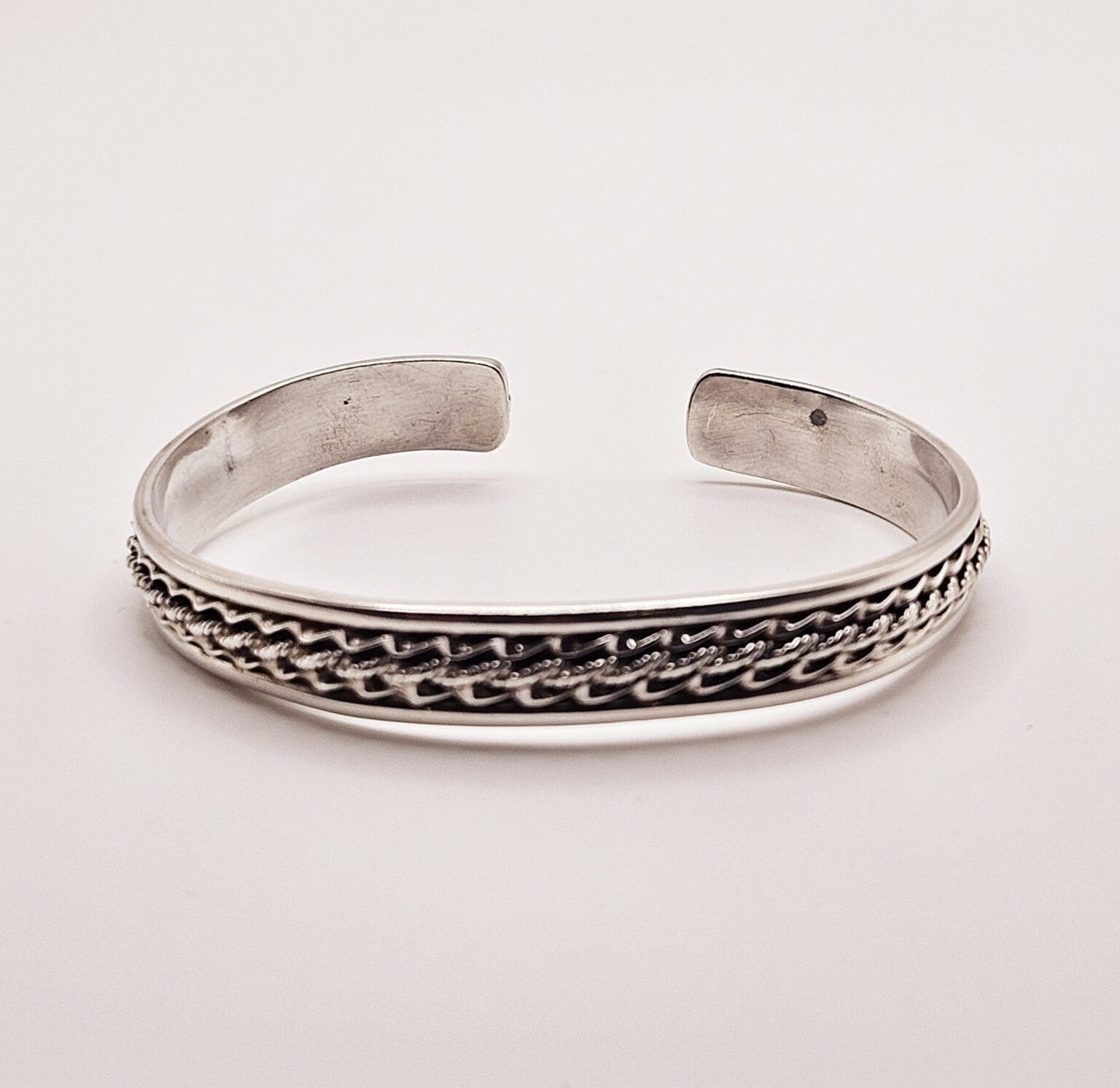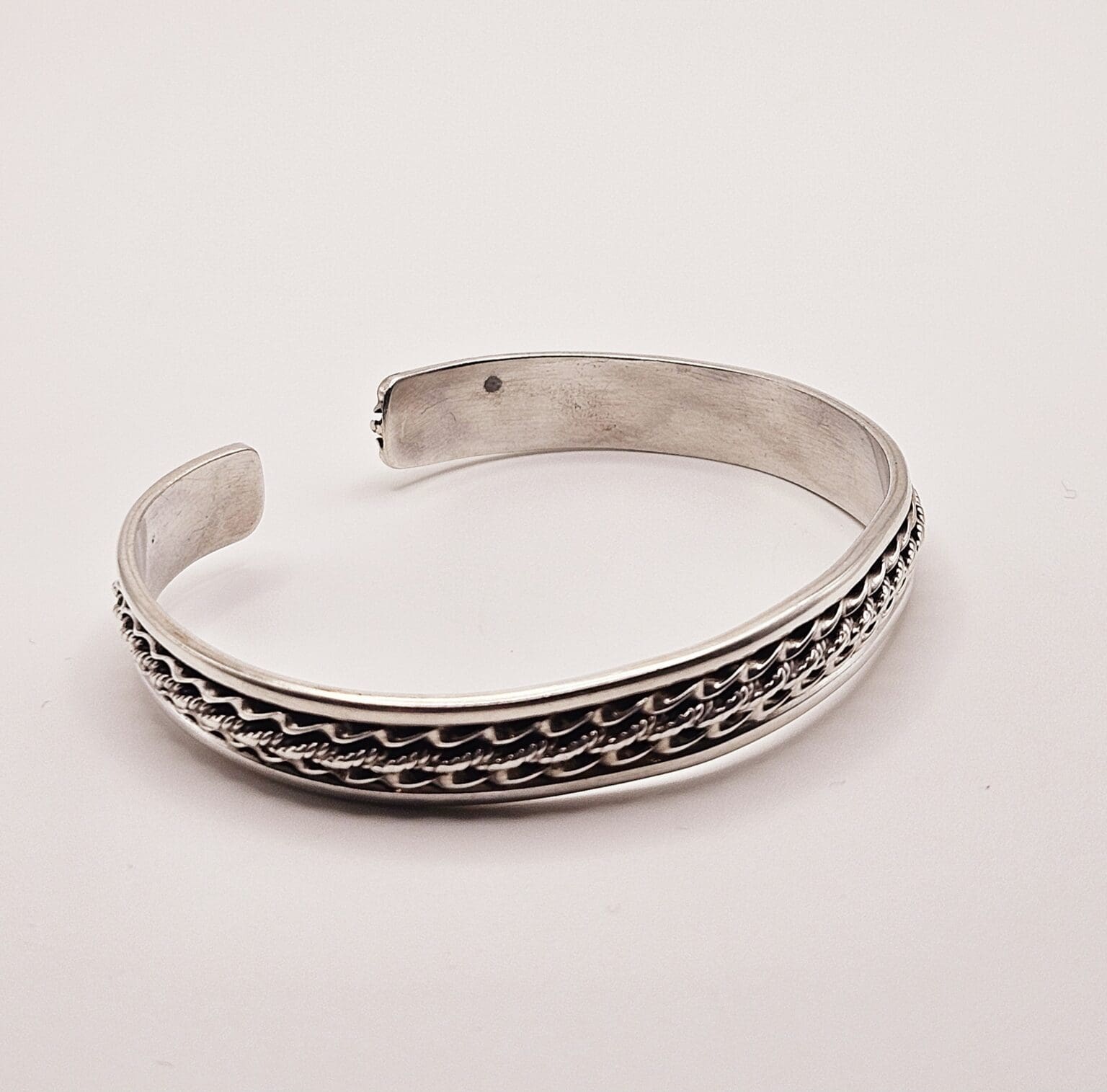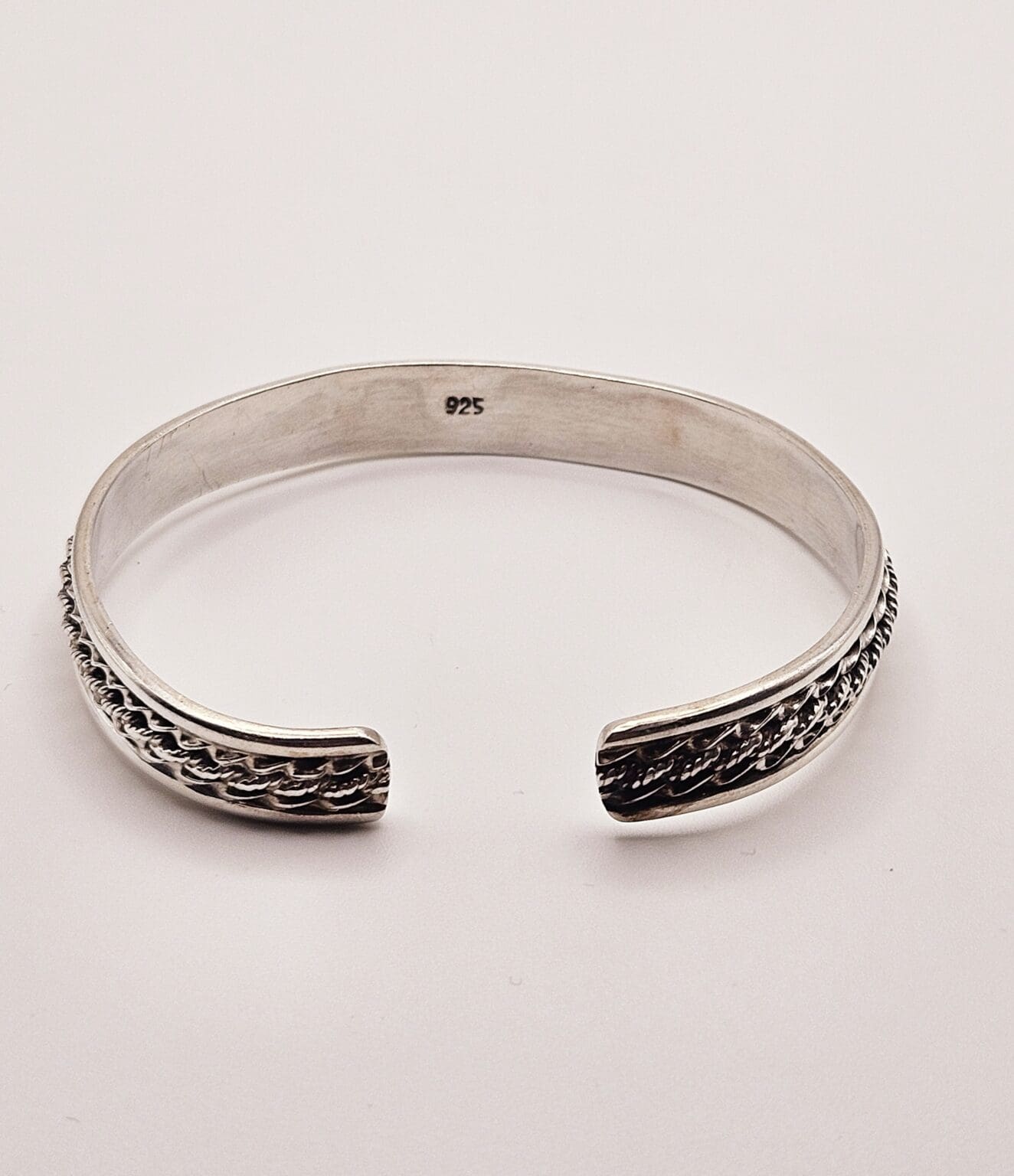 Beautiful sterling silver braided cuff bracelet. Signed 925.