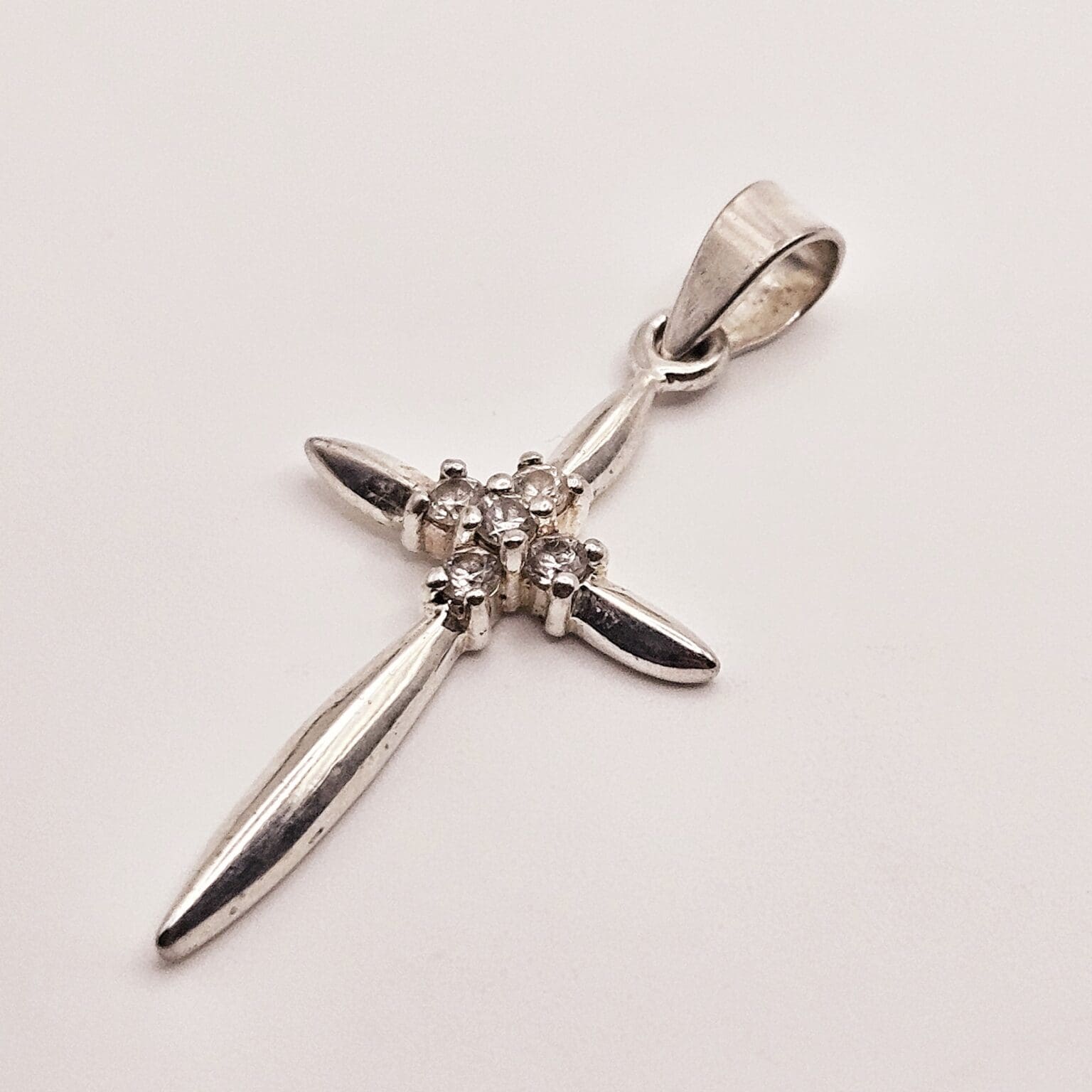 Beautiful sterling silver cz cross pendant. Stamped 925.