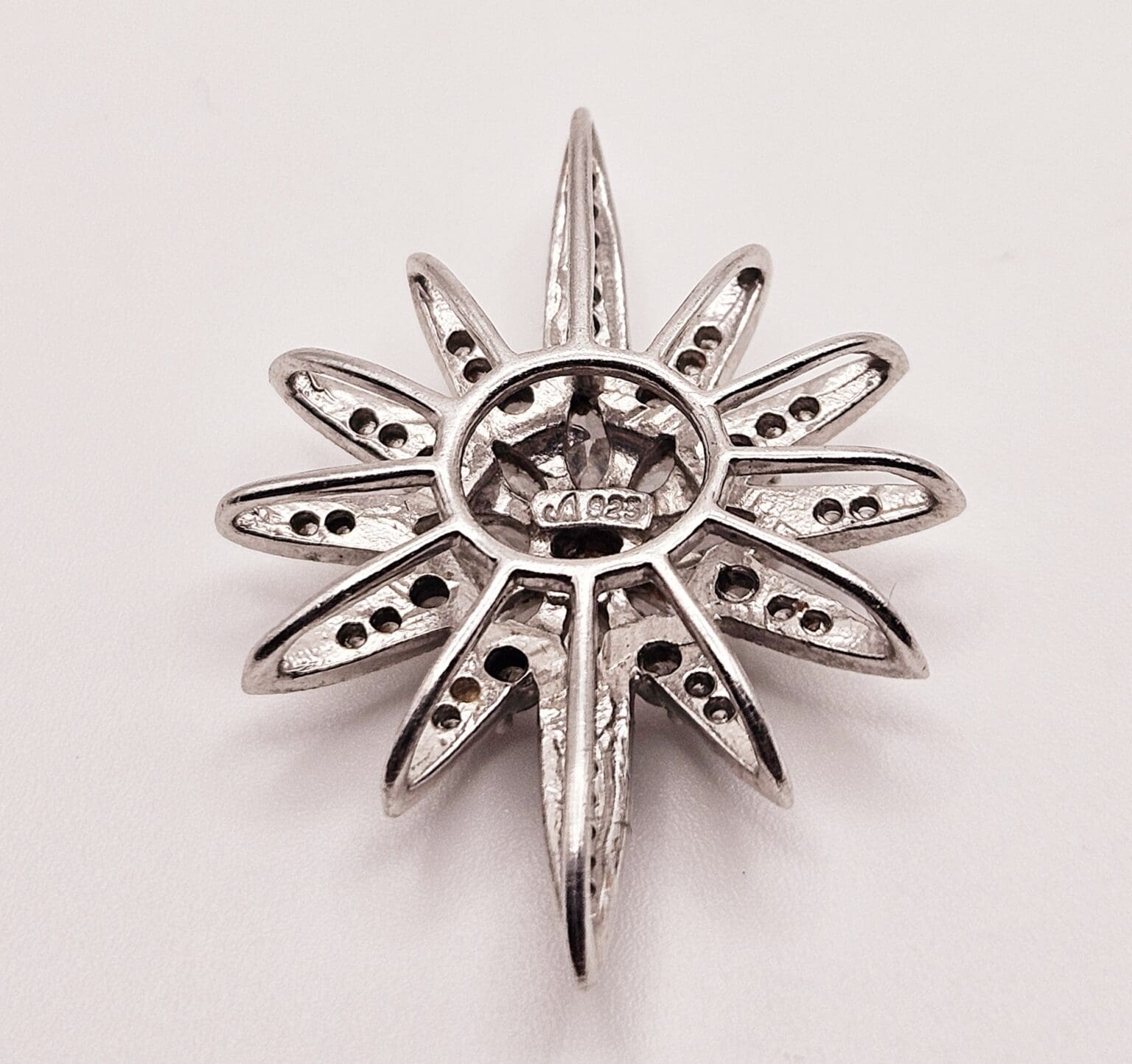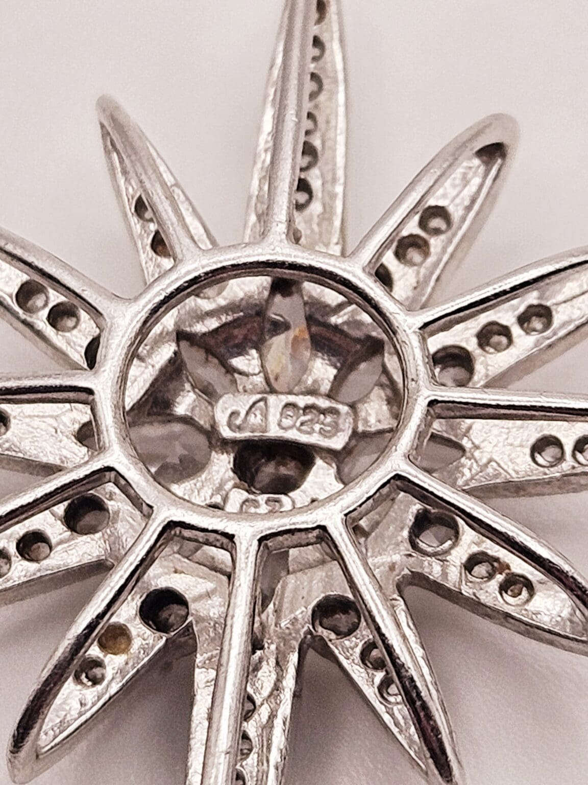 Stunning brilliant sterling silver cz starburst pendant. Signed A CZ 925.