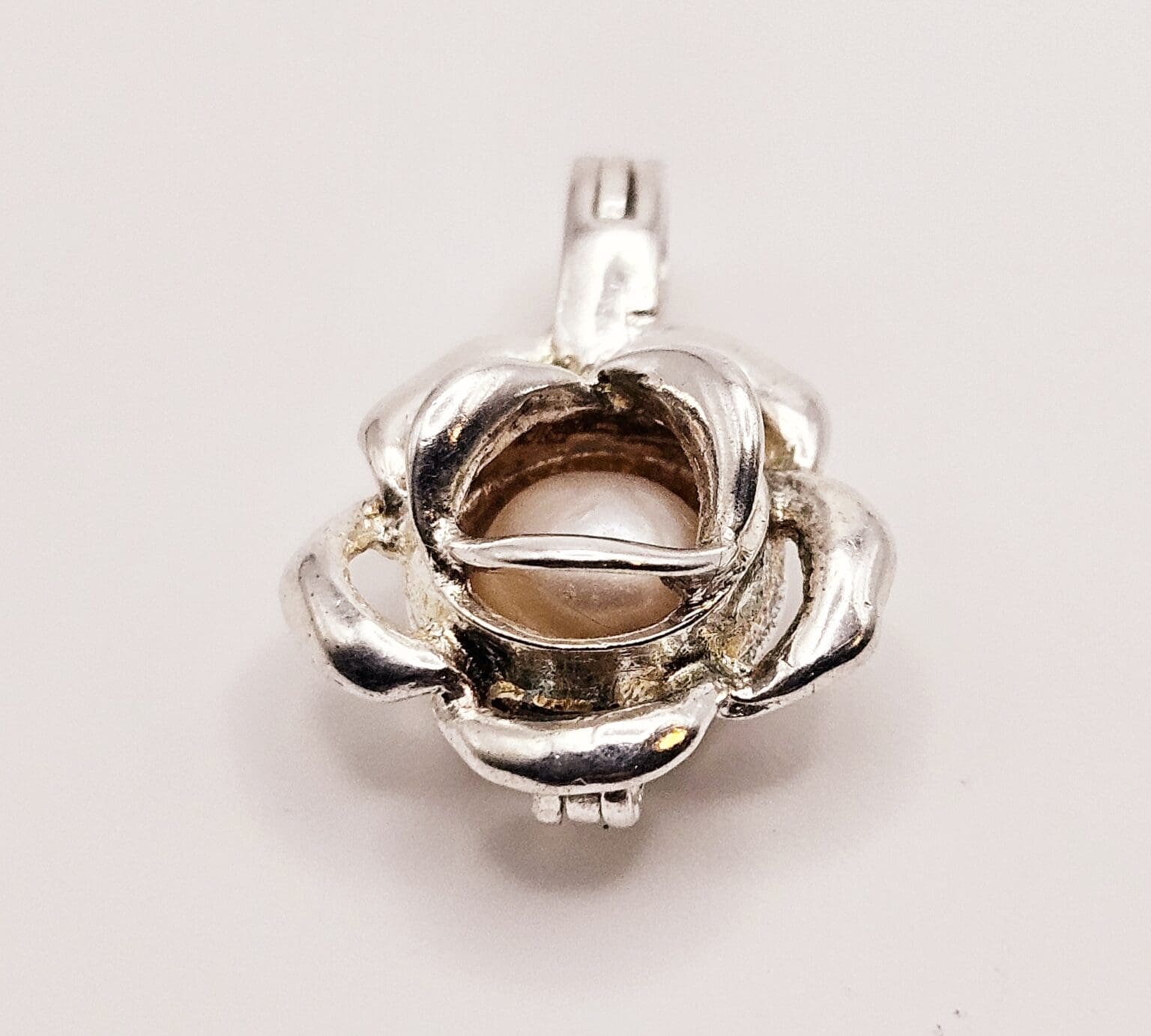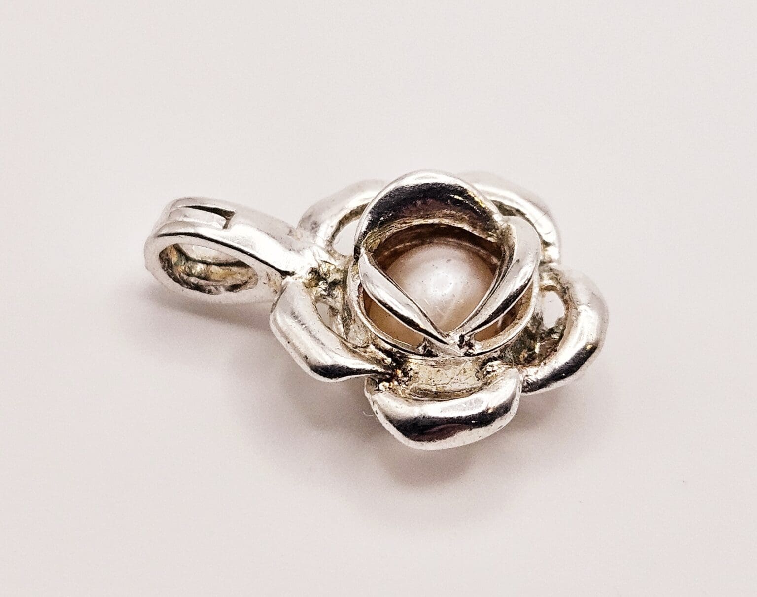 Charming sterling silver floral pearl pendant. Stamped 925.