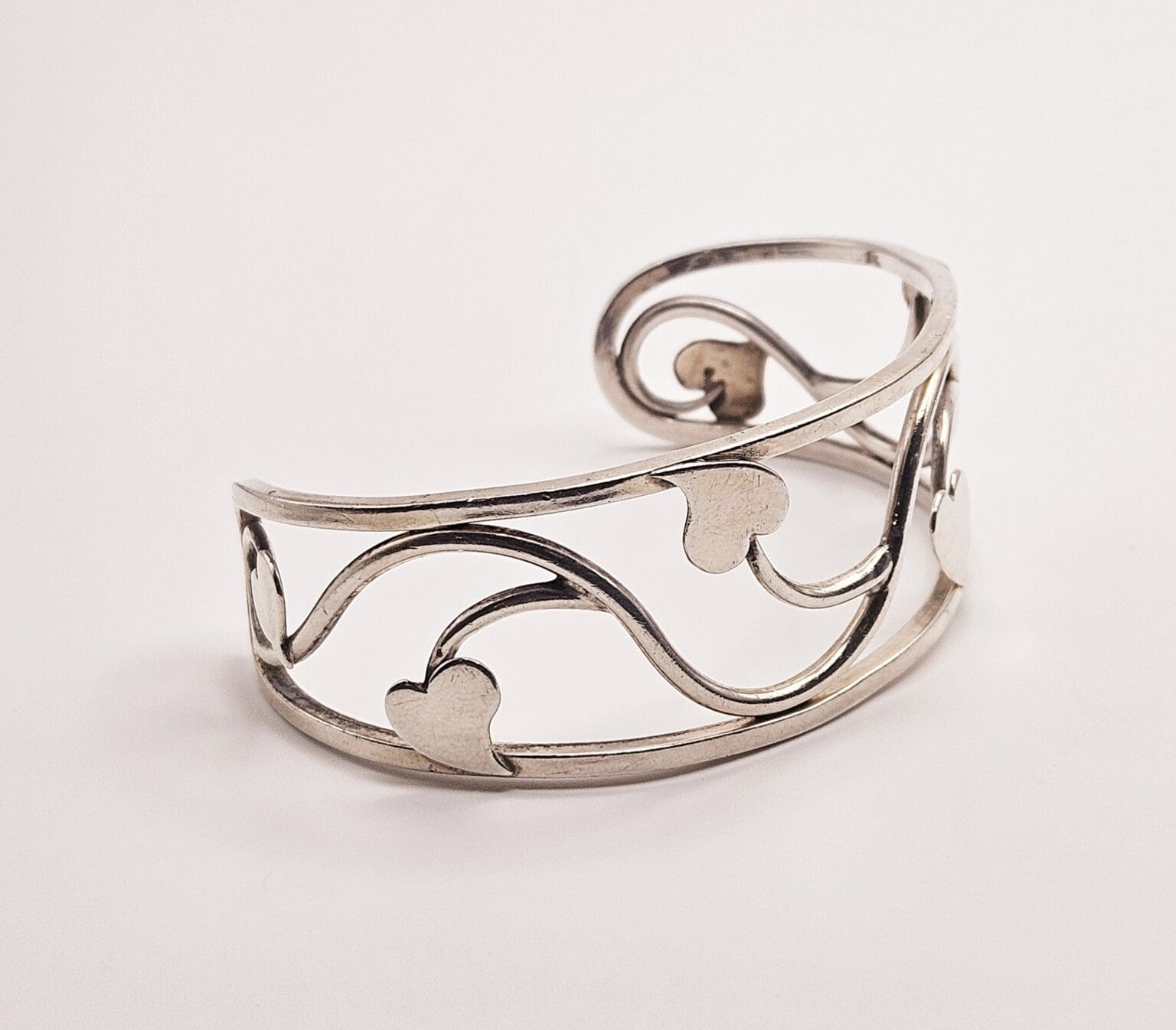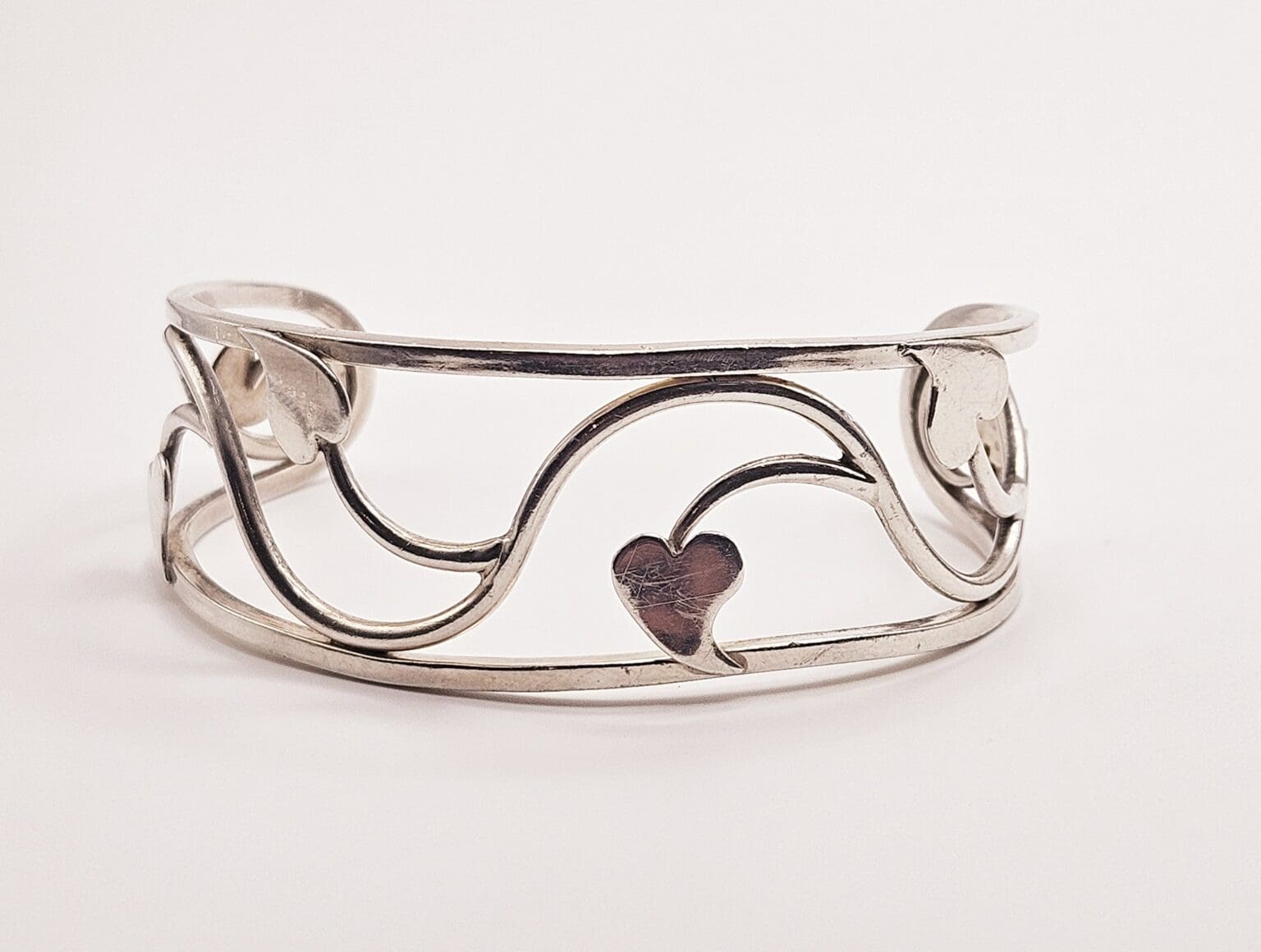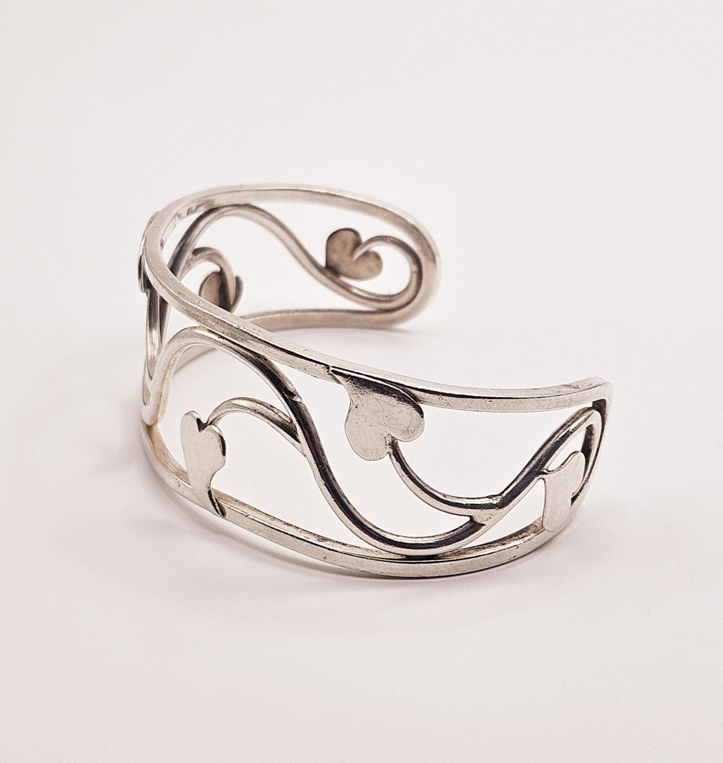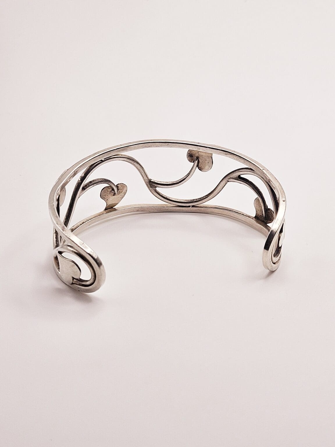 Stunning sterling silver heart and vine cuff bracelet. Tested 925.