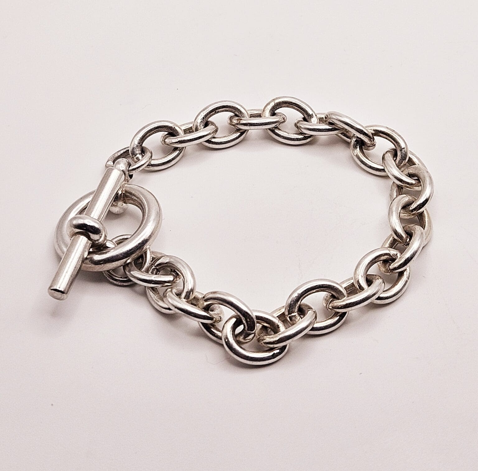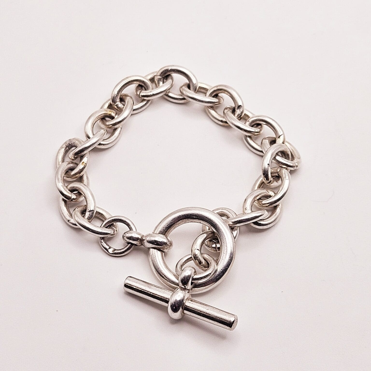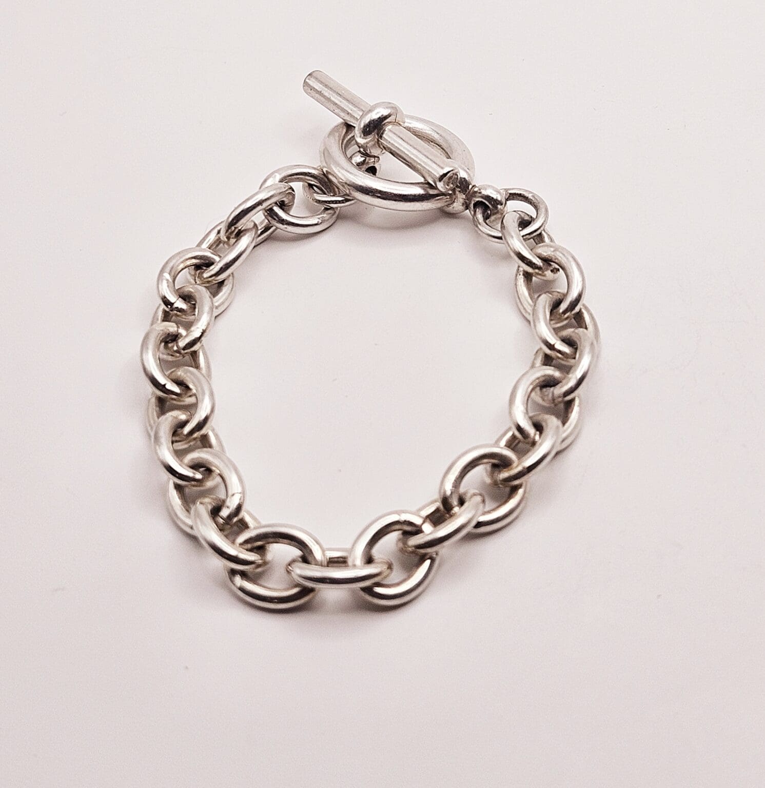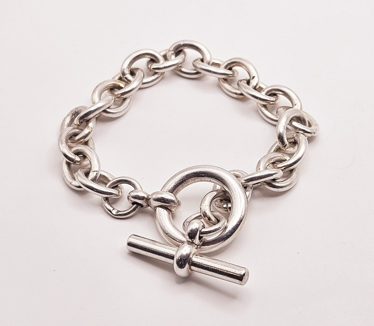 Beautiful sterling silver linked toggle clasped bracelet. Tested 925.