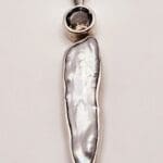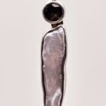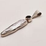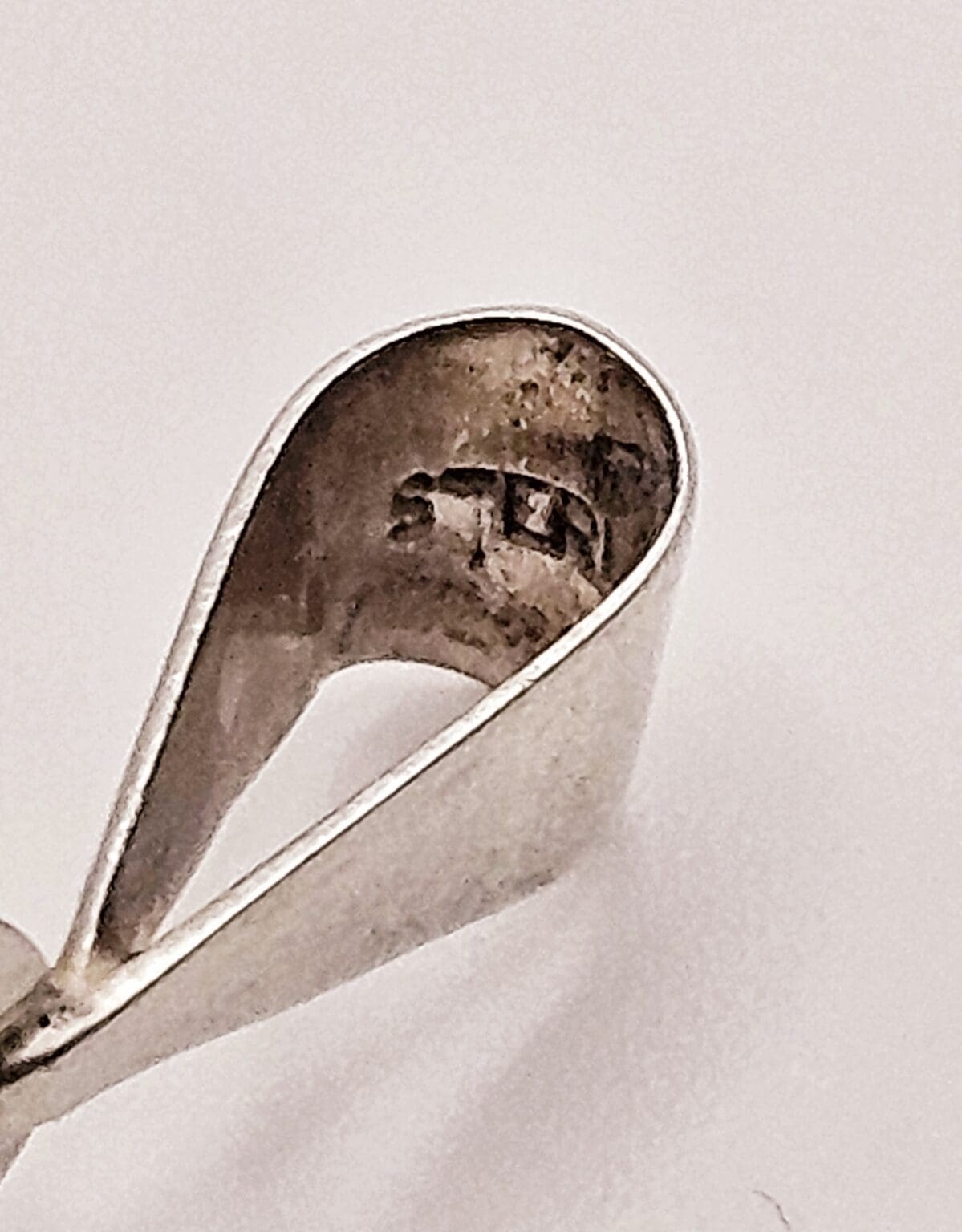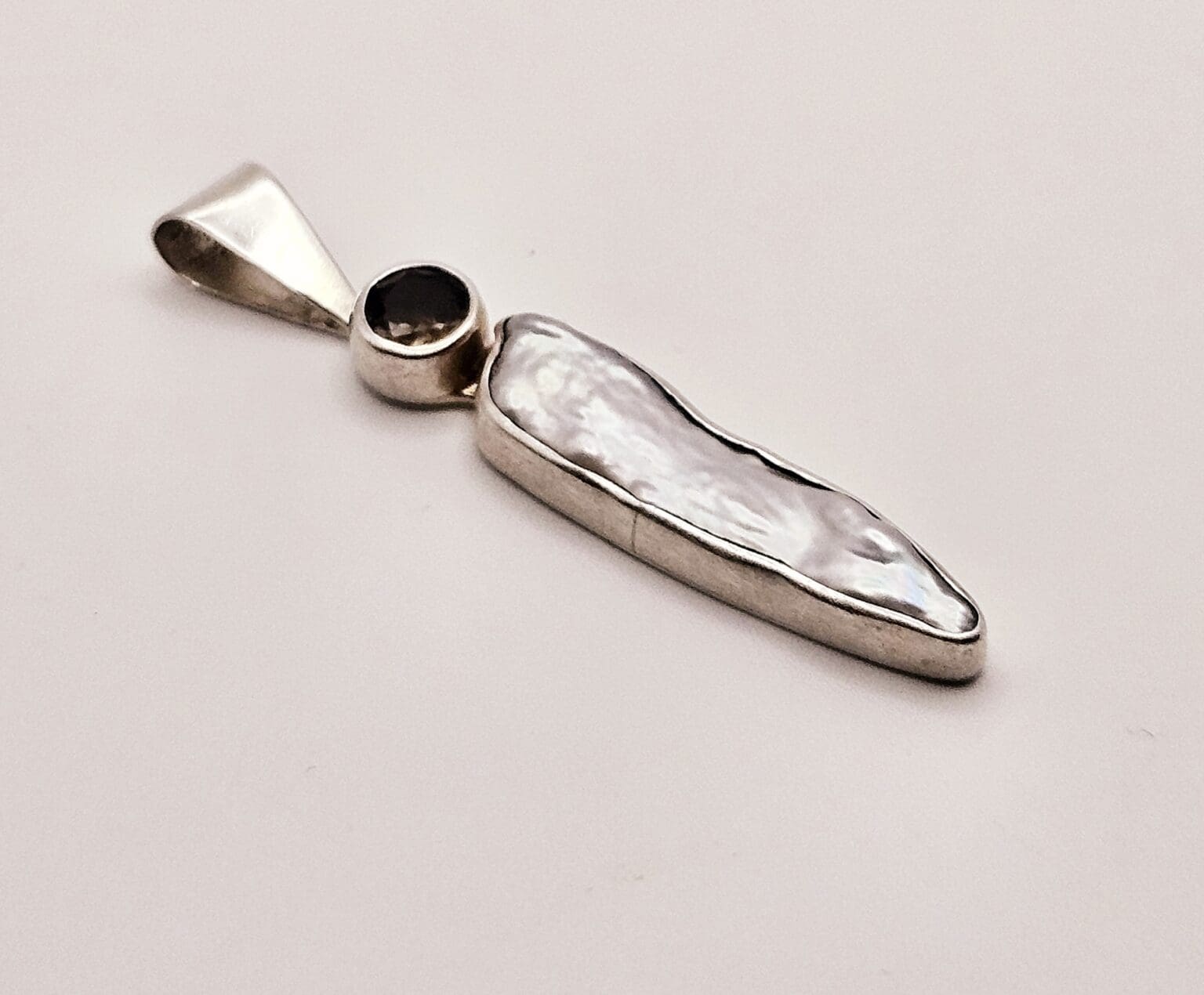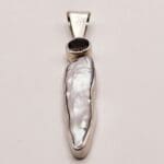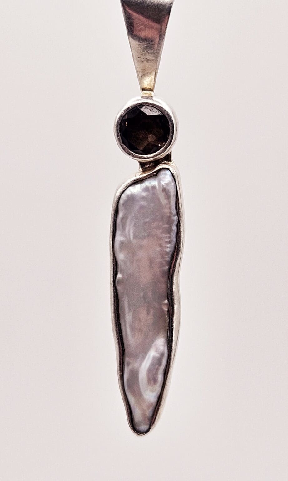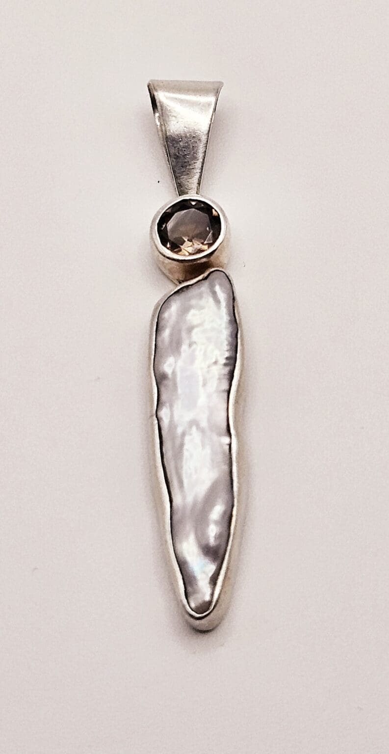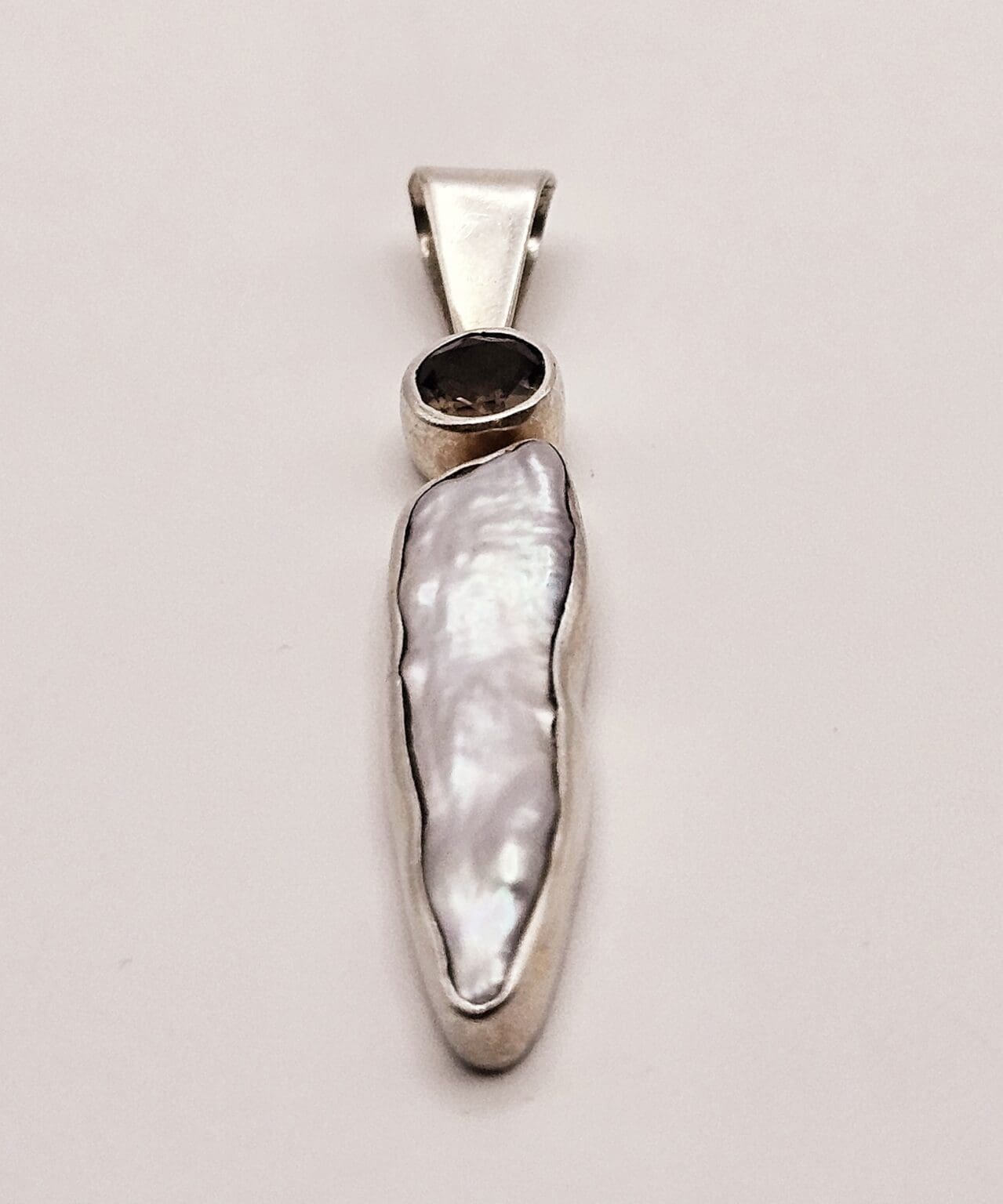 Beautiful sterling silver mother of pearl and smoky quartz pendant. Signed STERLING.