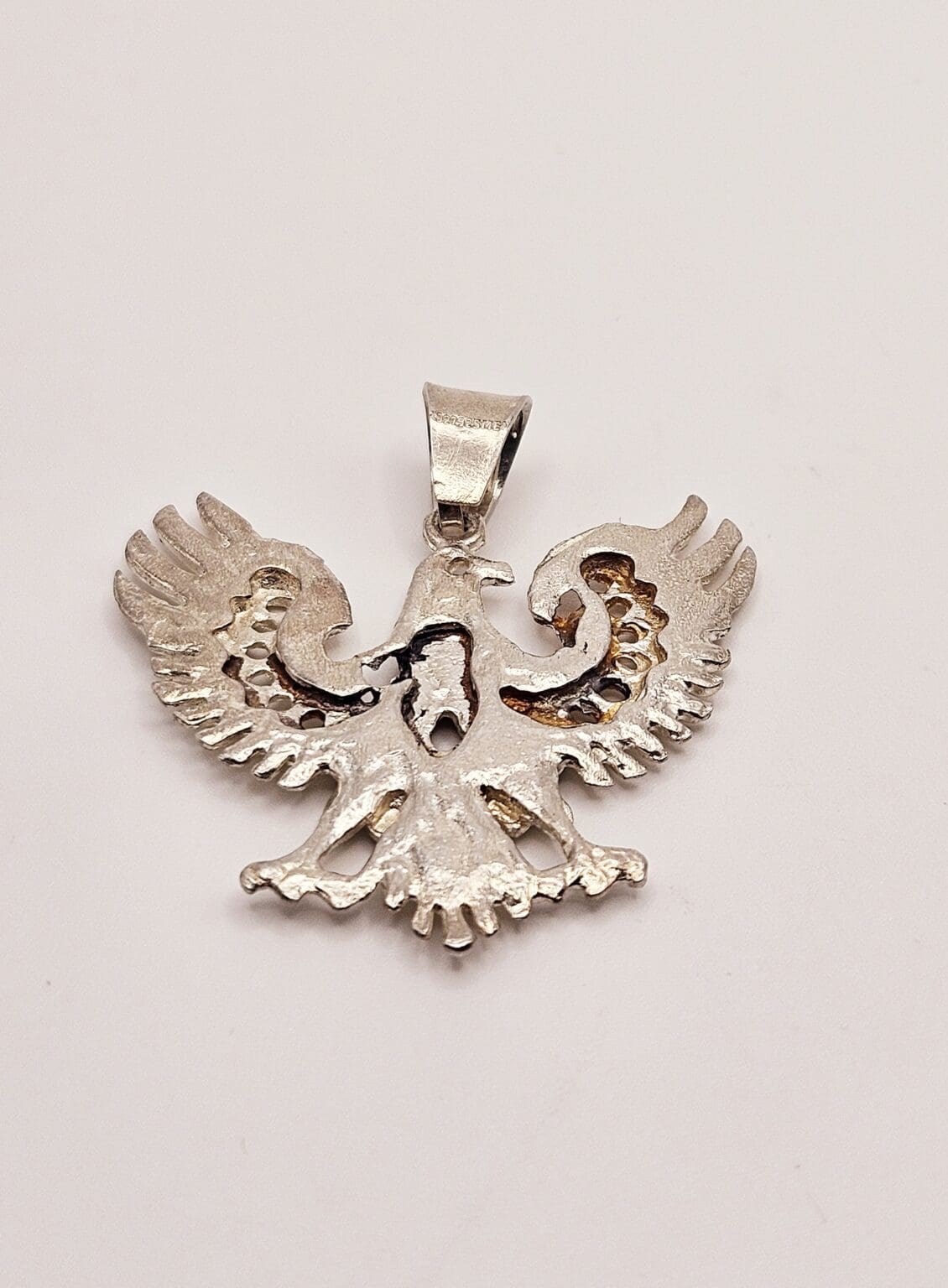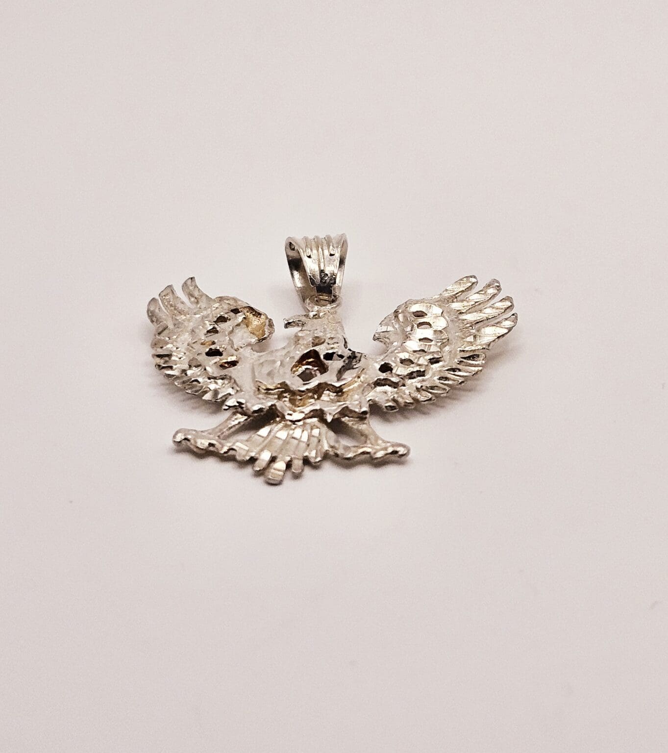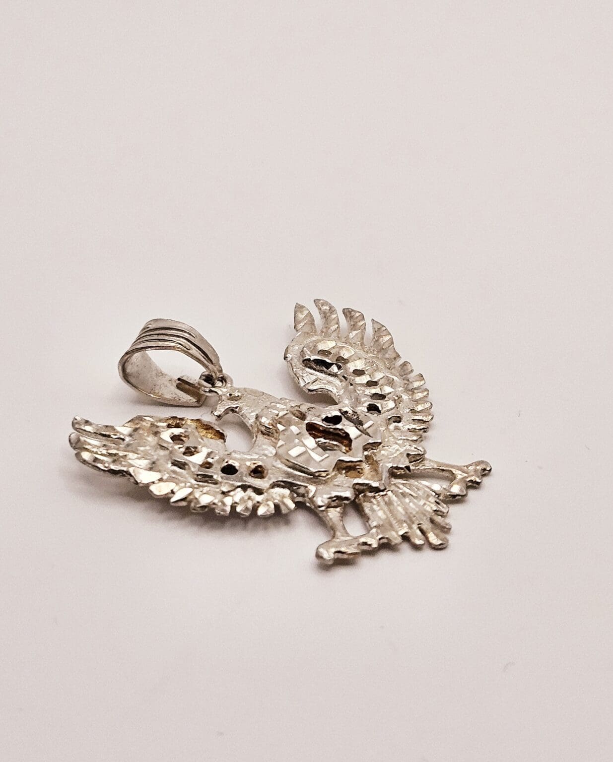 Stunning sterling silver native Mexico diamond cut eagle pendant. Signed MEX 925.