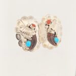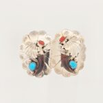 Sterling silver native turquoise & coral concho oval post back earrings