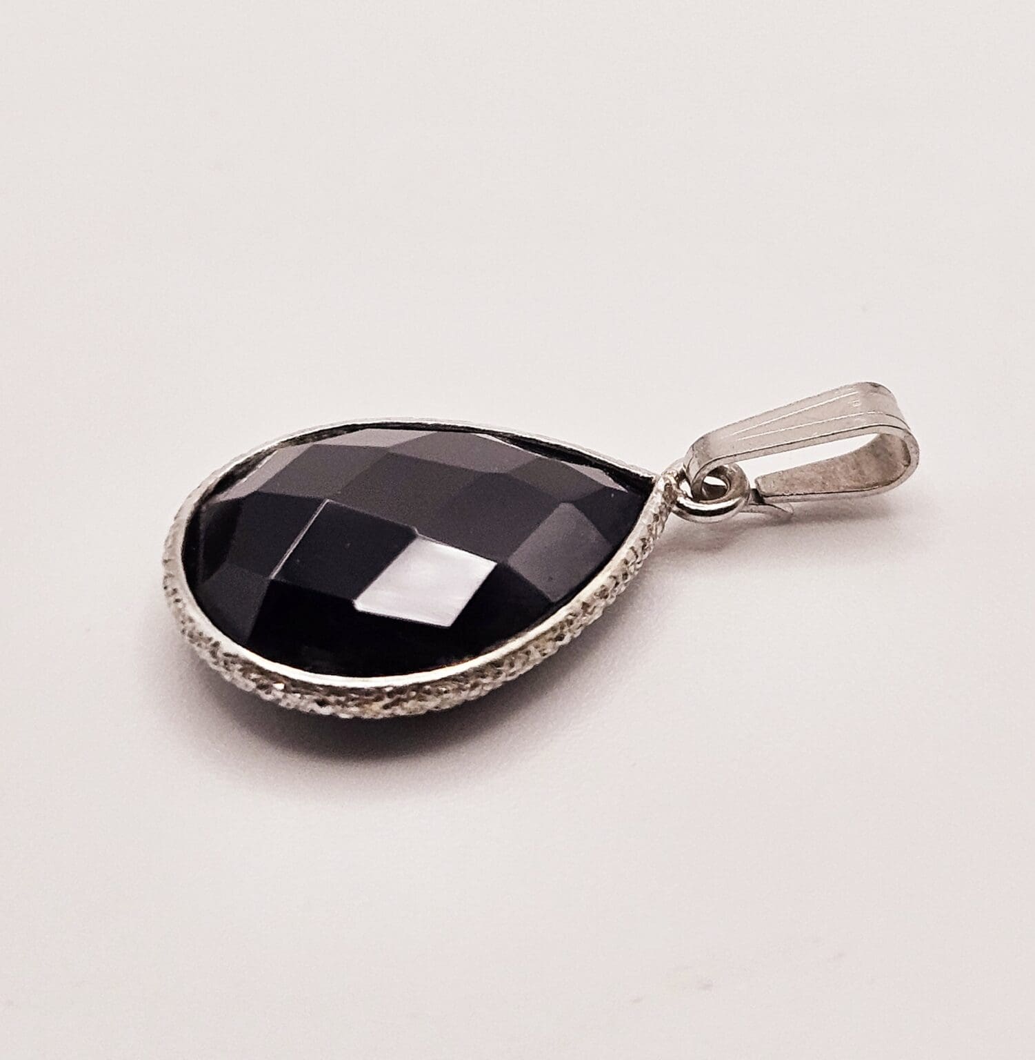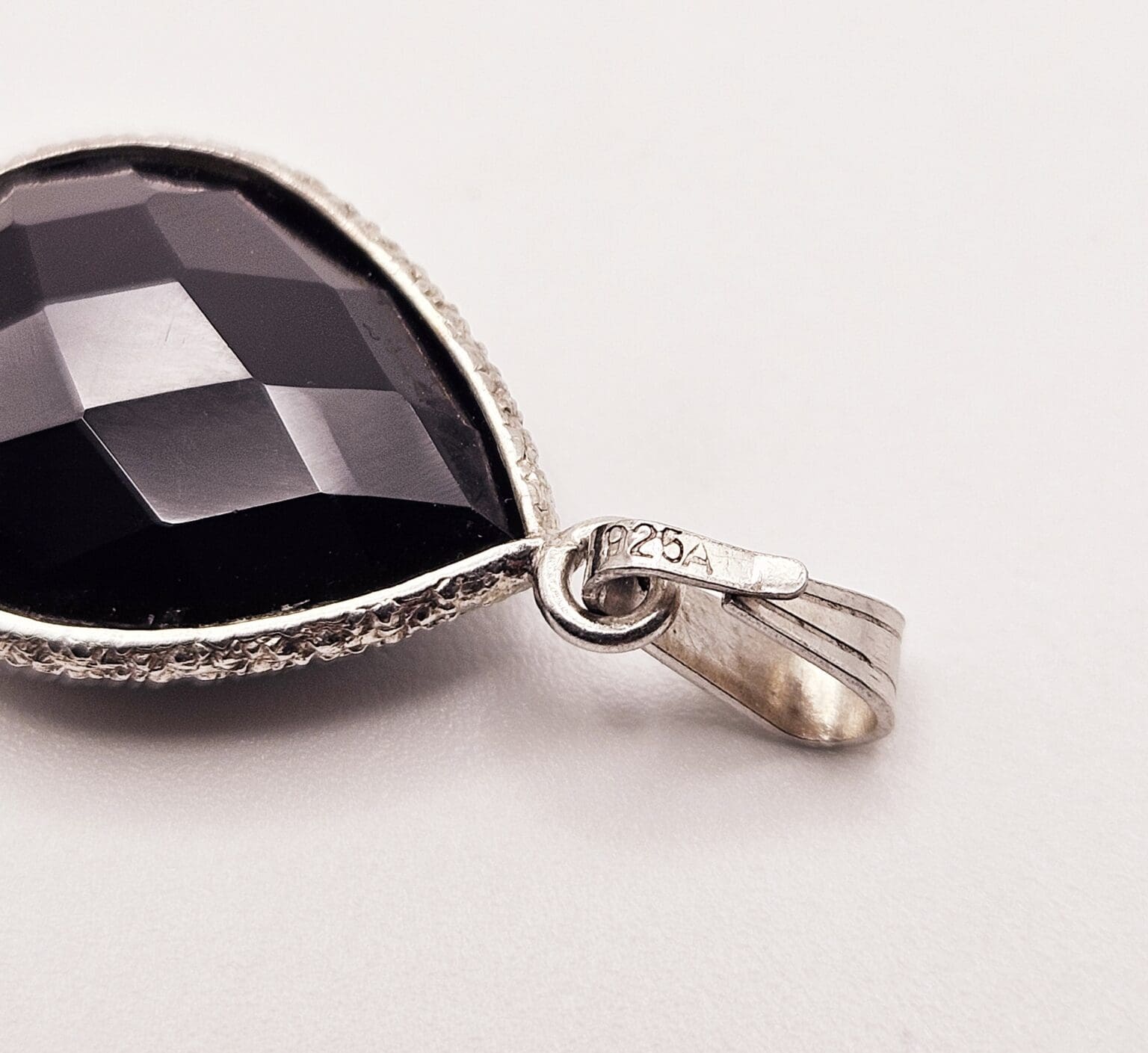 Beautiful sterling silver oval black onyx pendant. Signed 925.