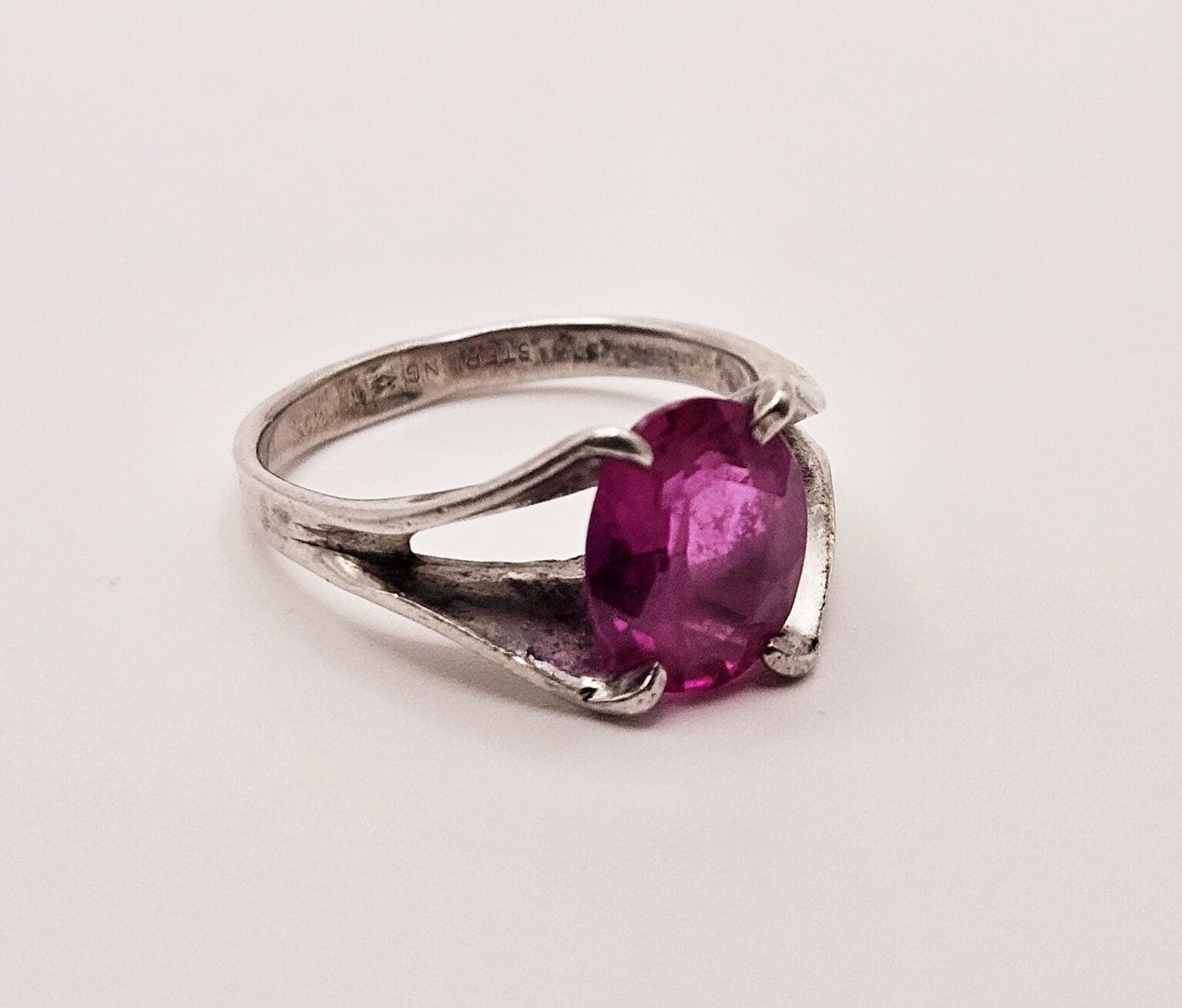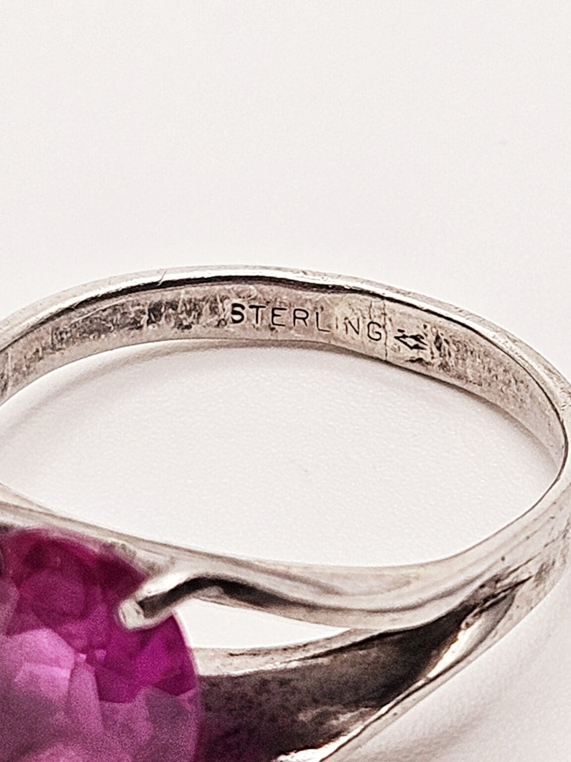 Stunning sterling silver pink tourmaline ring. Signed STERLING.