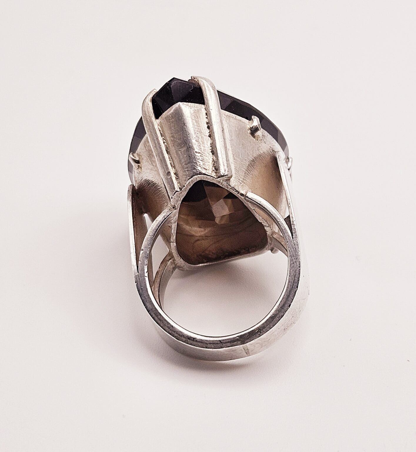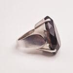 Sterling silver ring with huge 51 carat pear shaped smoky quartz ring