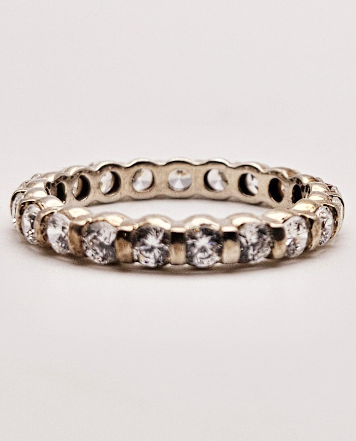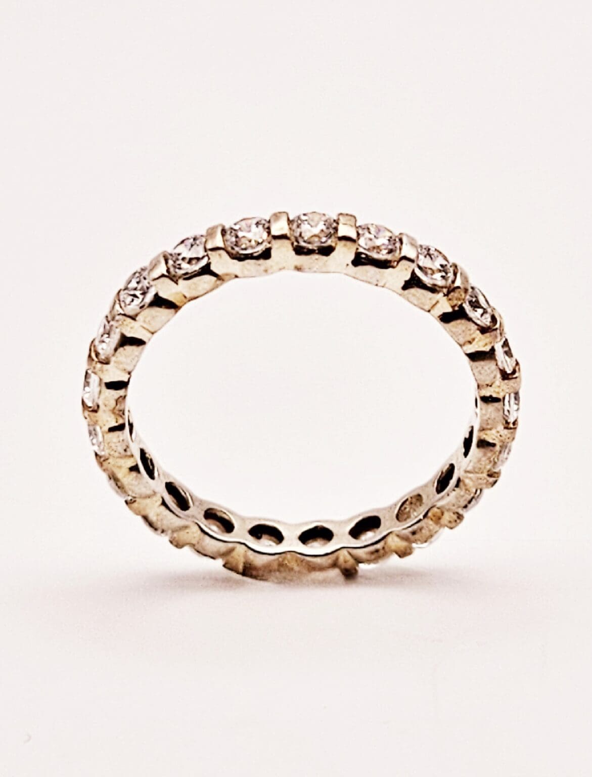 Charming sterling silver infinity band ring with dazzling cz stones. Signed CZ 925.