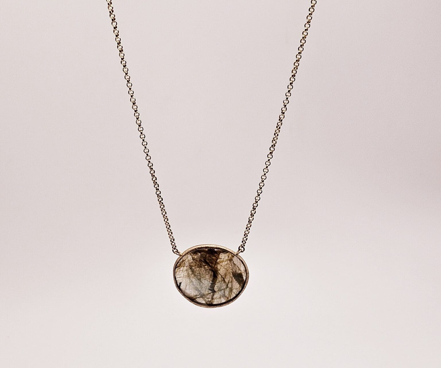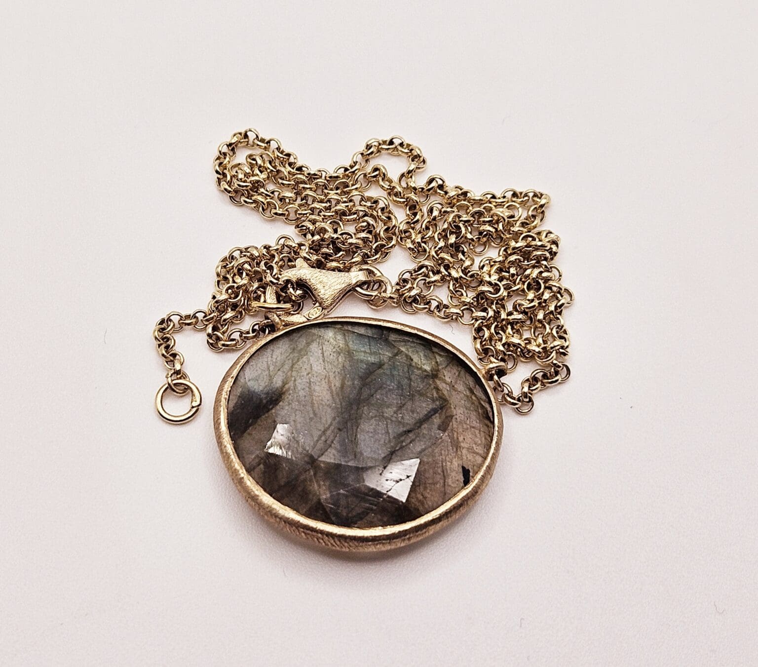 Stunning sterling silver vermeil labradorite necklace. Signed 925.