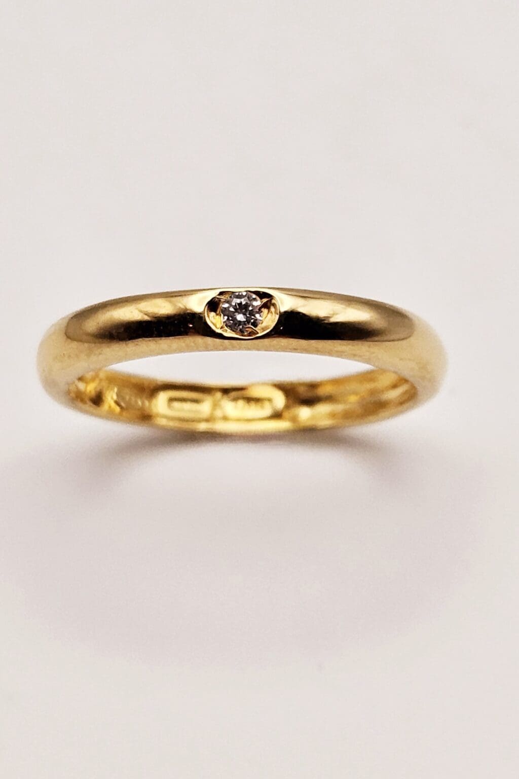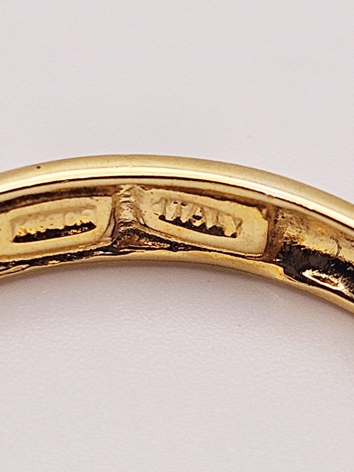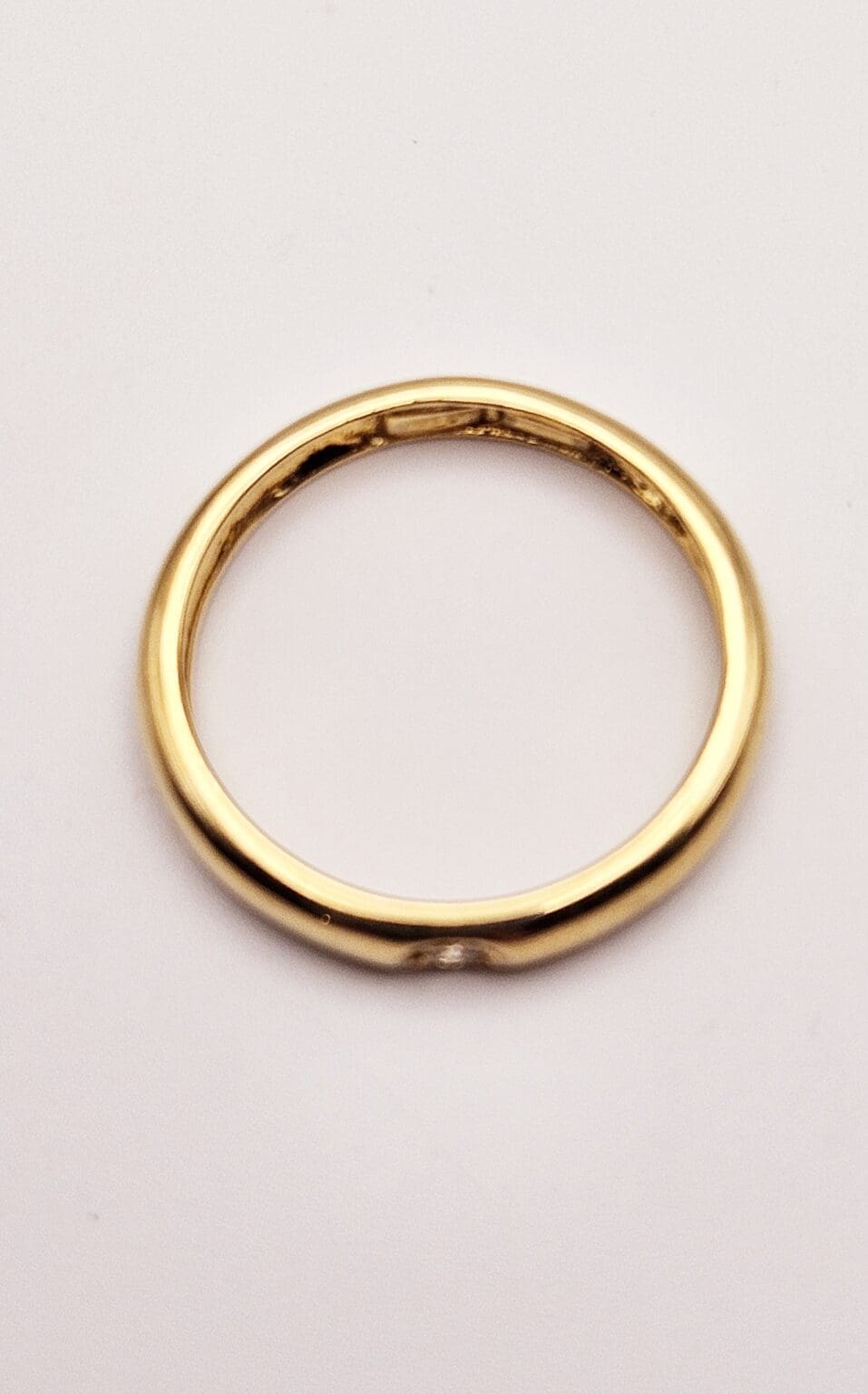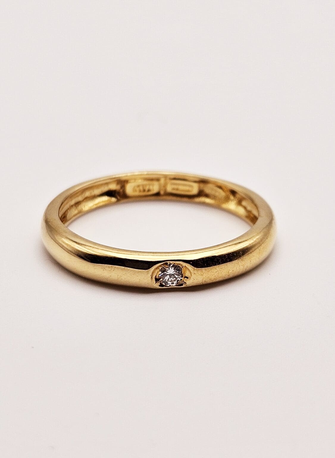 Charming sterling silver vermeil band ring with cz accent stone. Signed ITALY 925.
