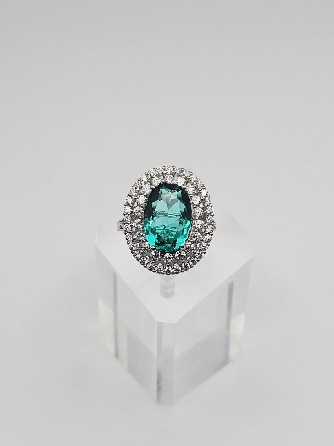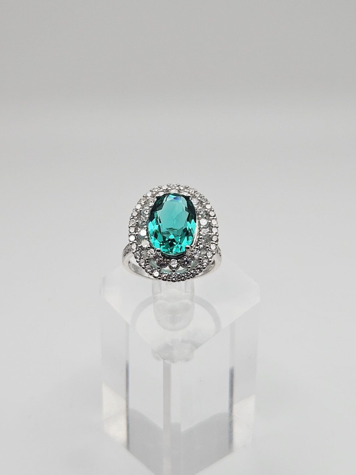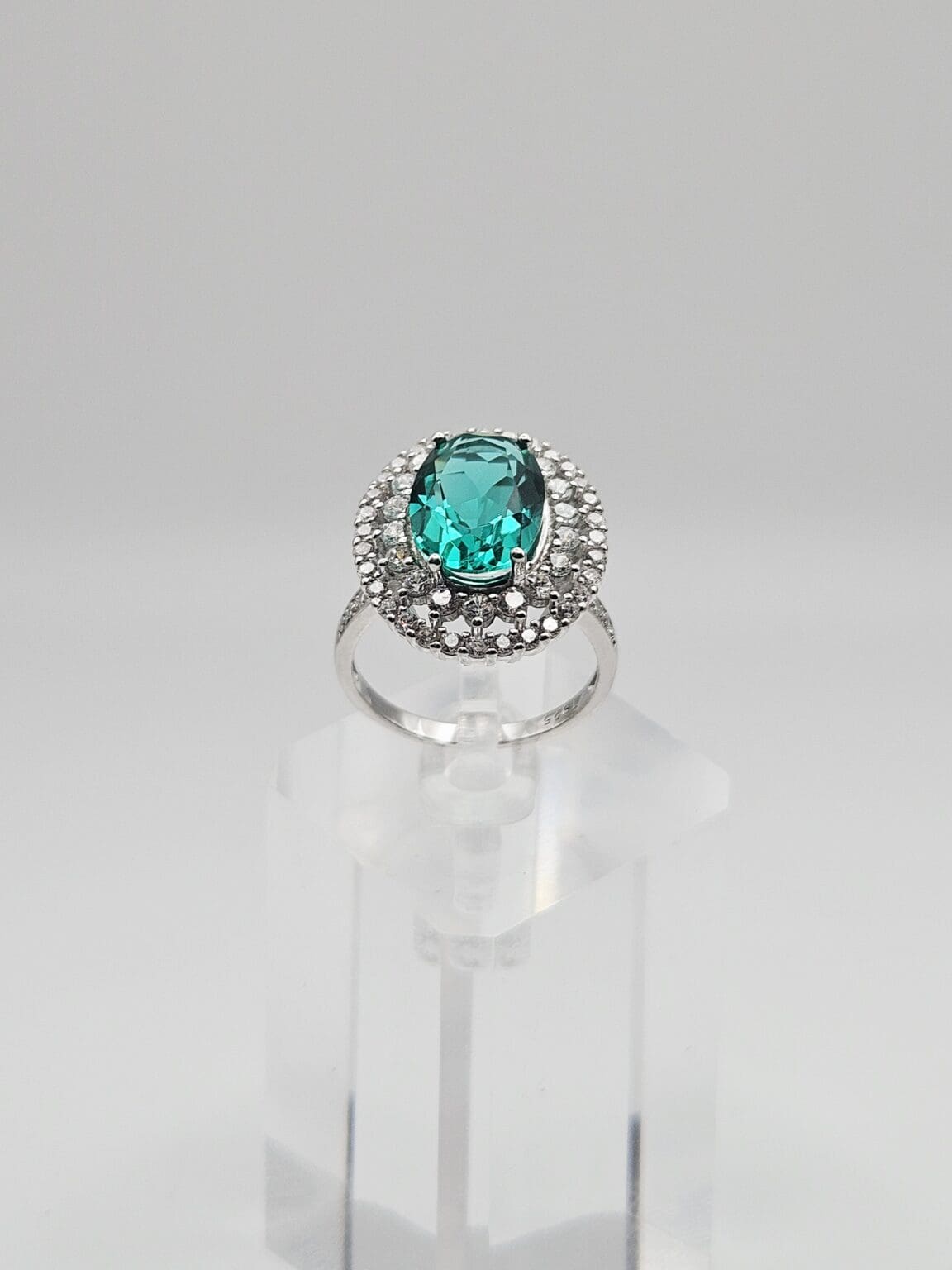 Gorgeous T Sterling Silver 2.88ct Green Tourmaline & CZ Halo Ring Stamped T 925, 1.5mm band