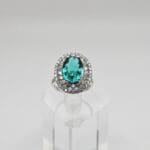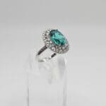 T Sterling Silver 2.88ct Green Tourmaline and CZ Halo Ring