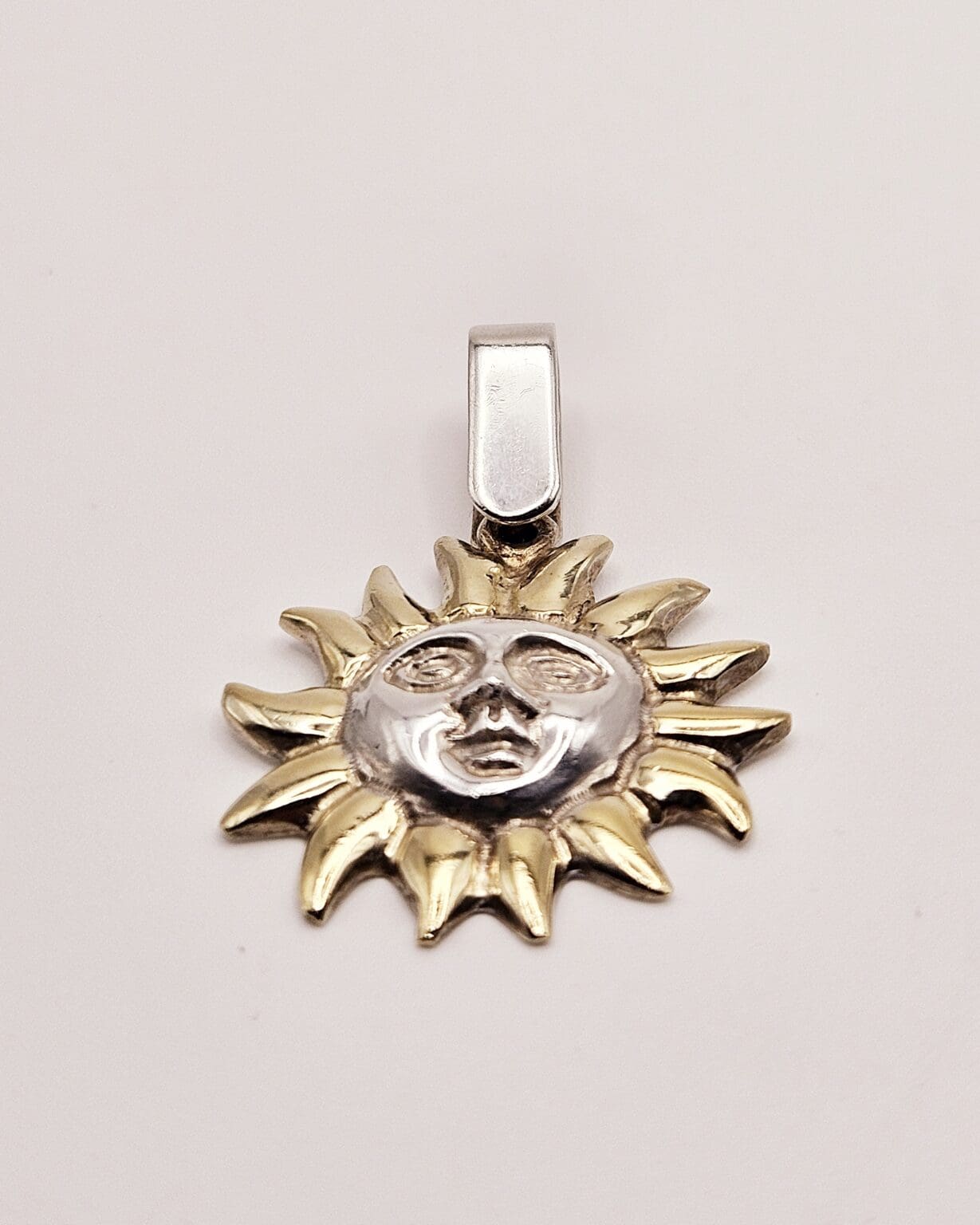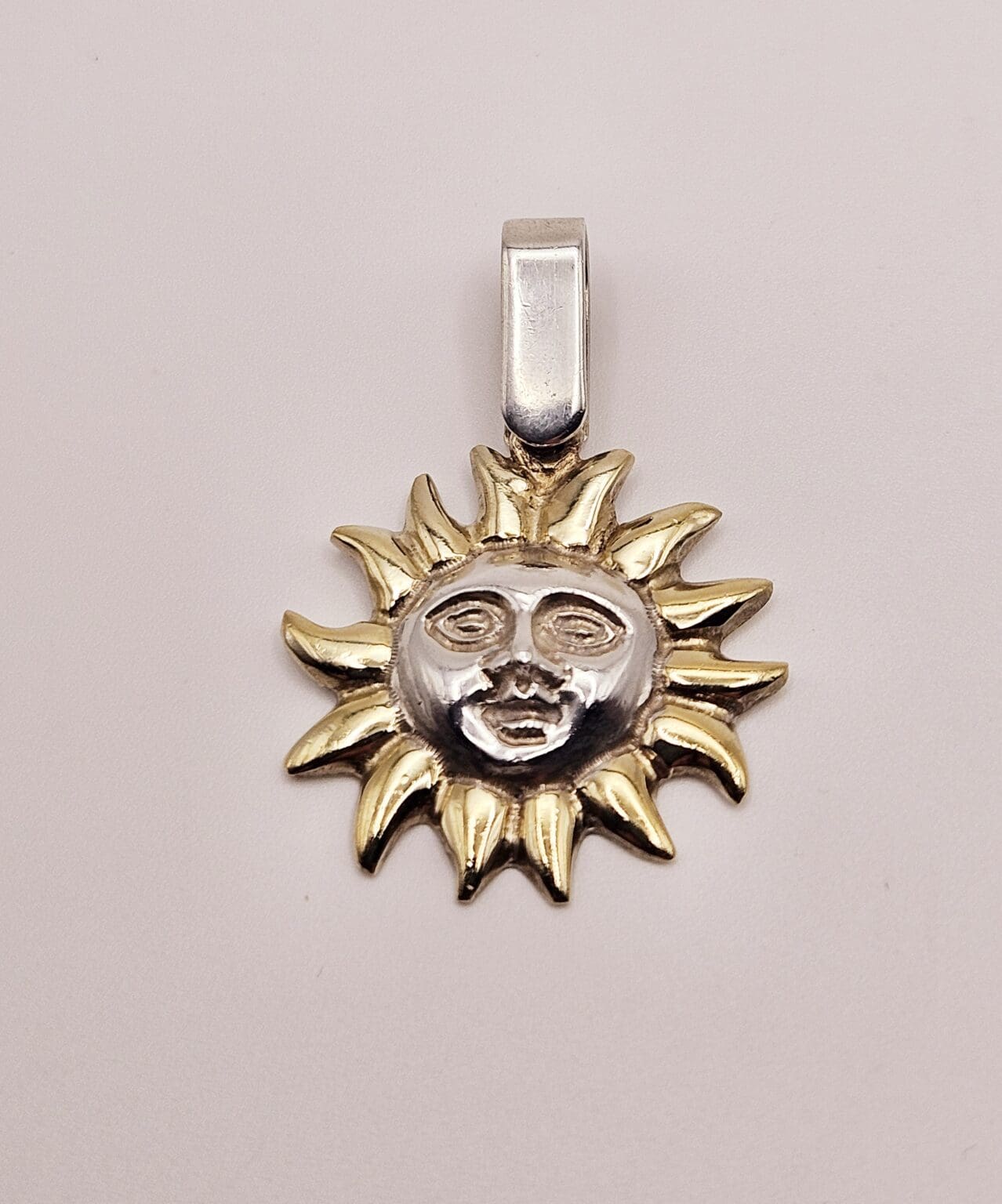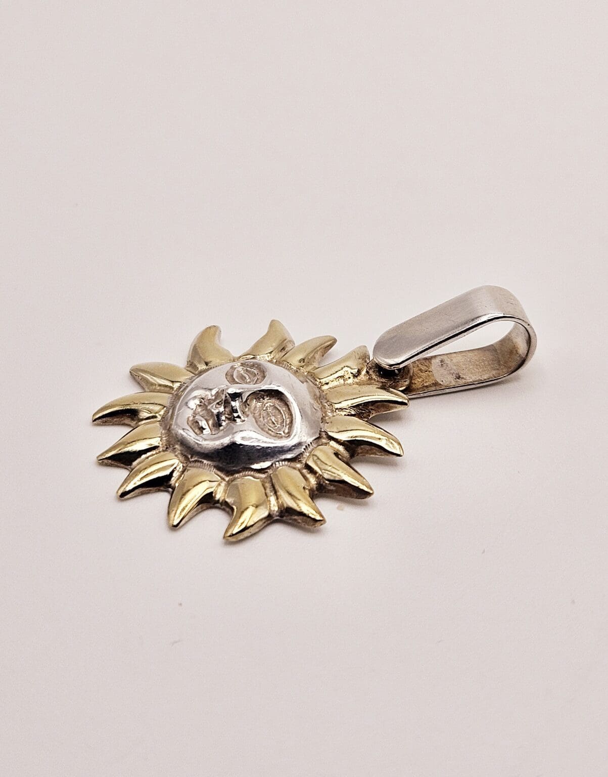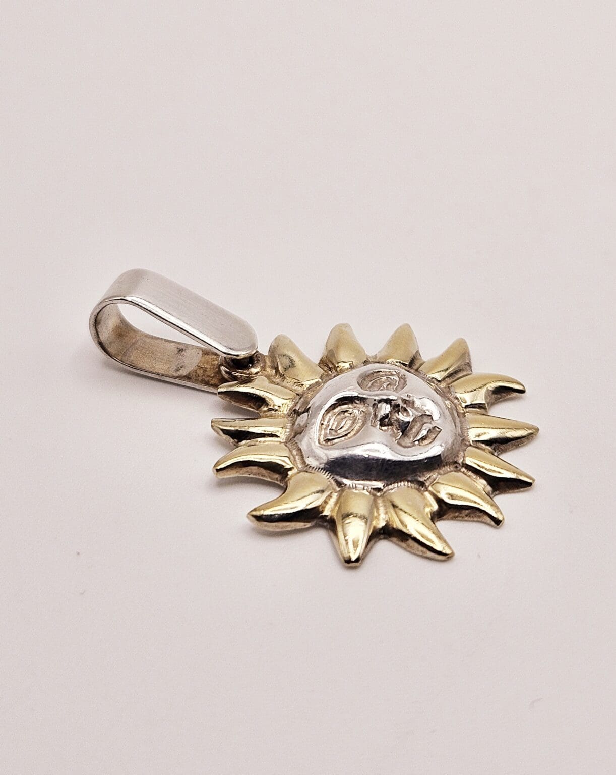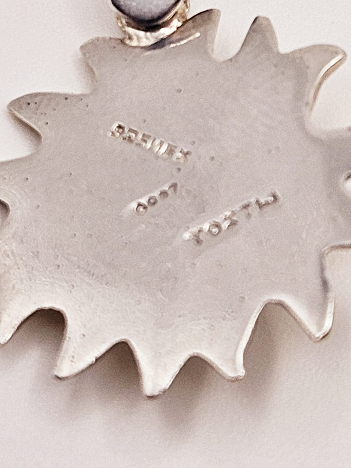 Gorgeous Toztli sterling silver native Mexico two tone sun pendant. Signed TOZTLI MEX 925.