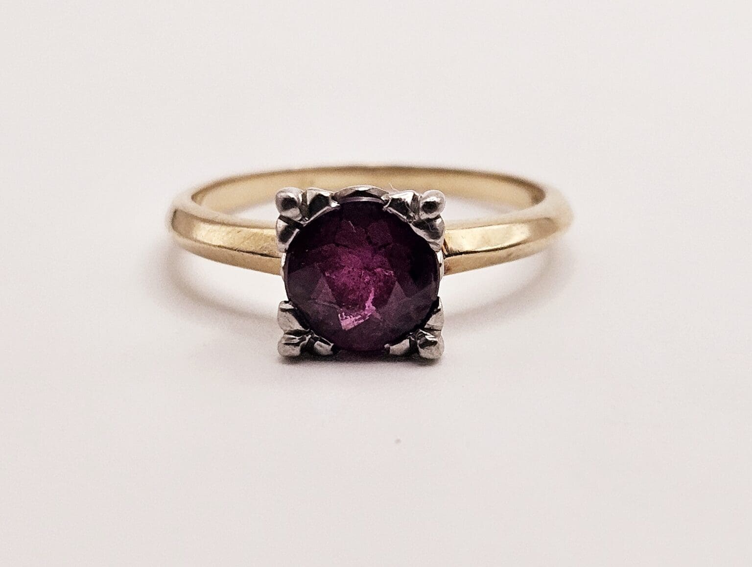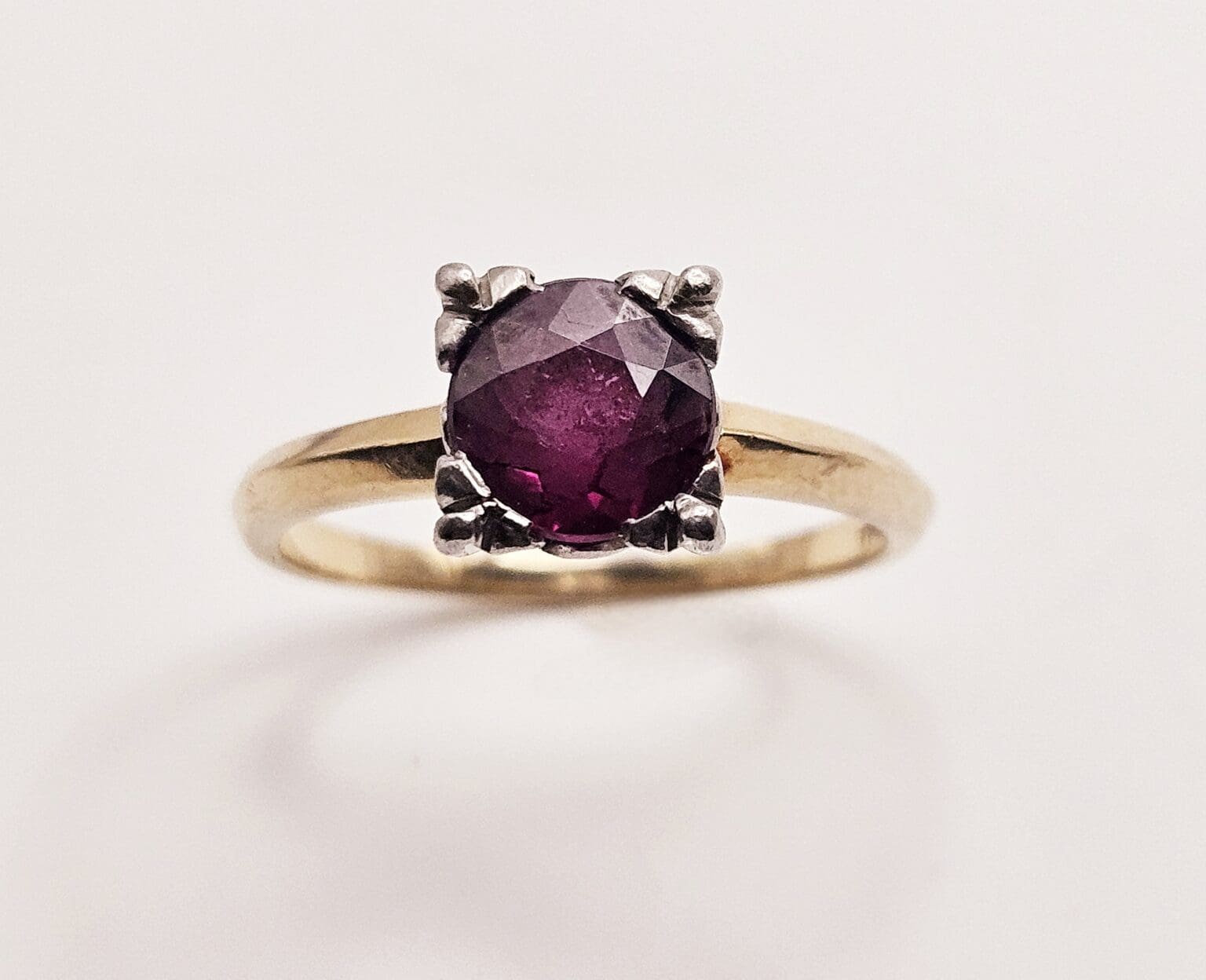 Vintage 14k solid gold and palladium genuine 1.5 carat round cut ruby ring