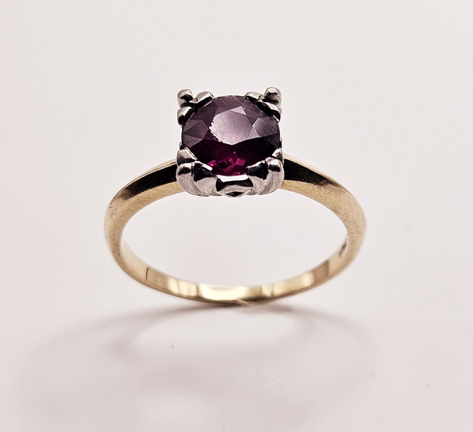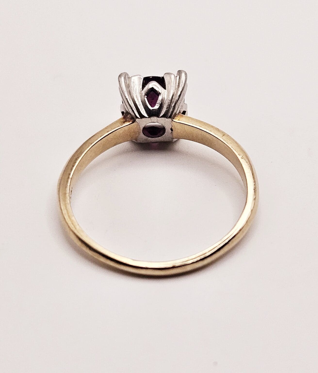 Breathtaking and unique 14k solid gold and palladium genuine 1.5 carat round cut ruby ring. Stamped 14k Pall.