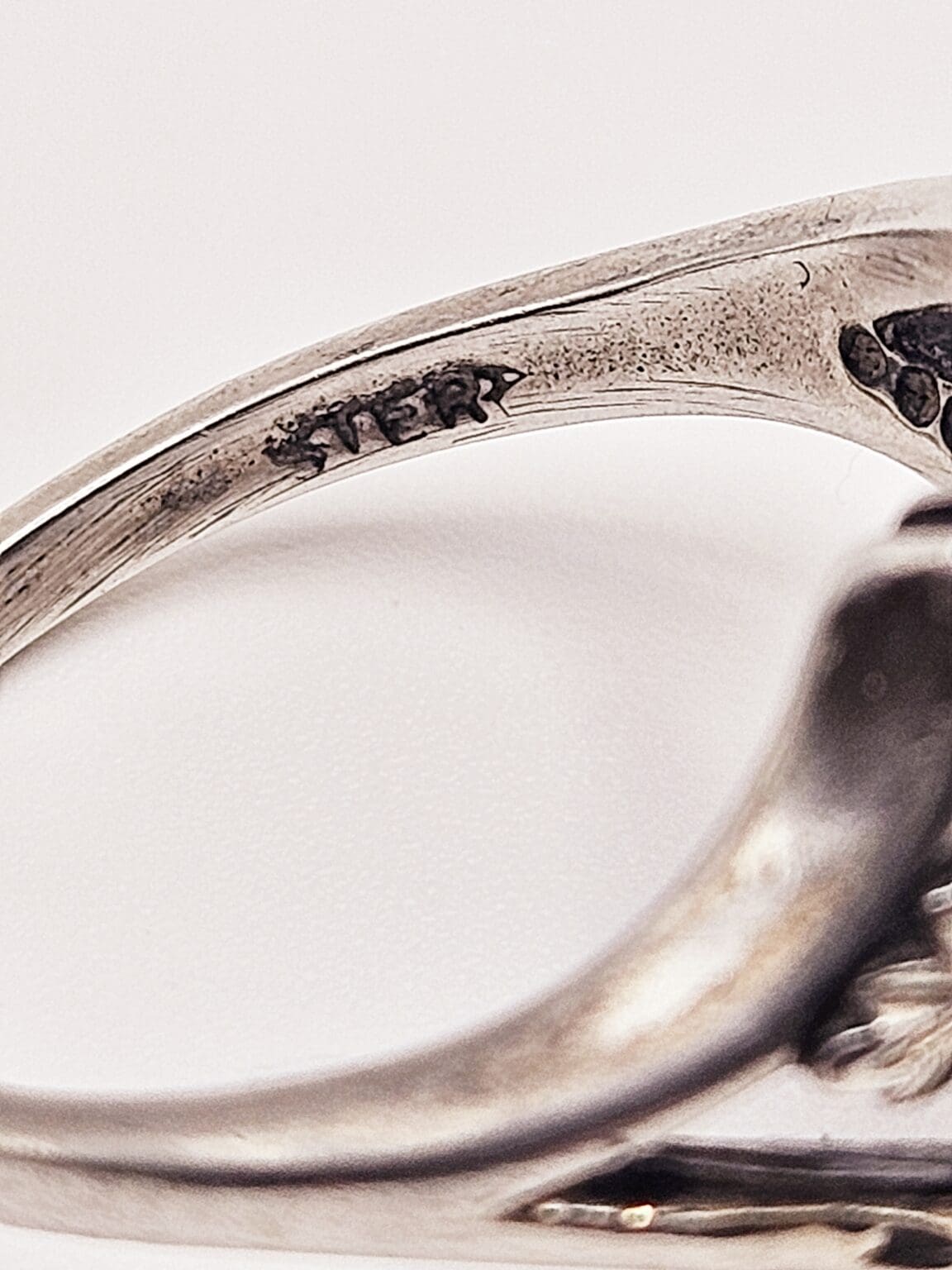 Charming Wheeler Manufacturing Co sterling silver ring with leaf design. Signed WM STER.