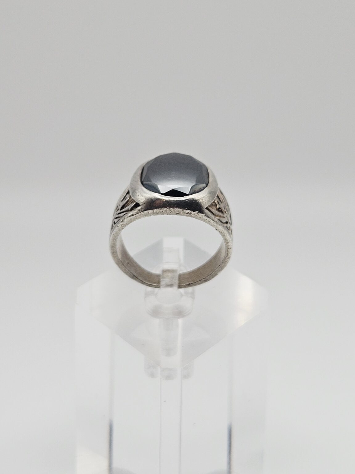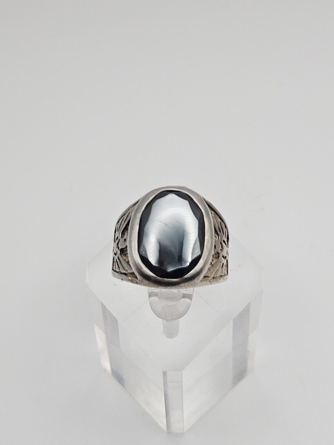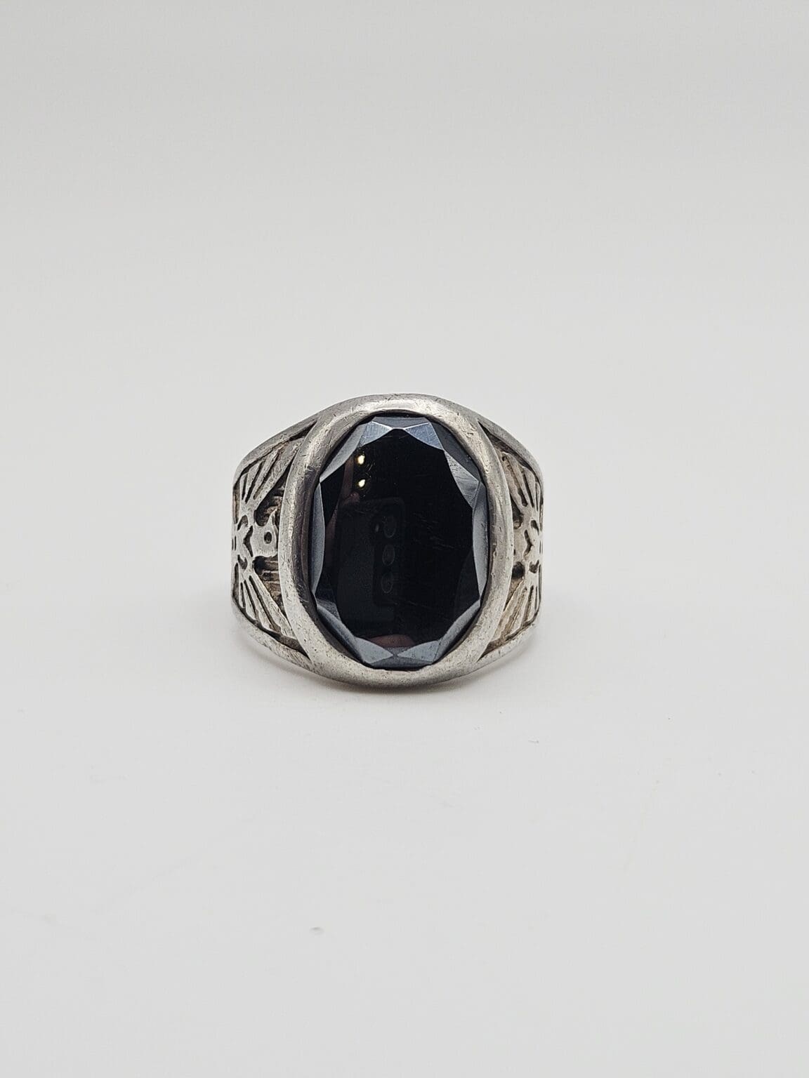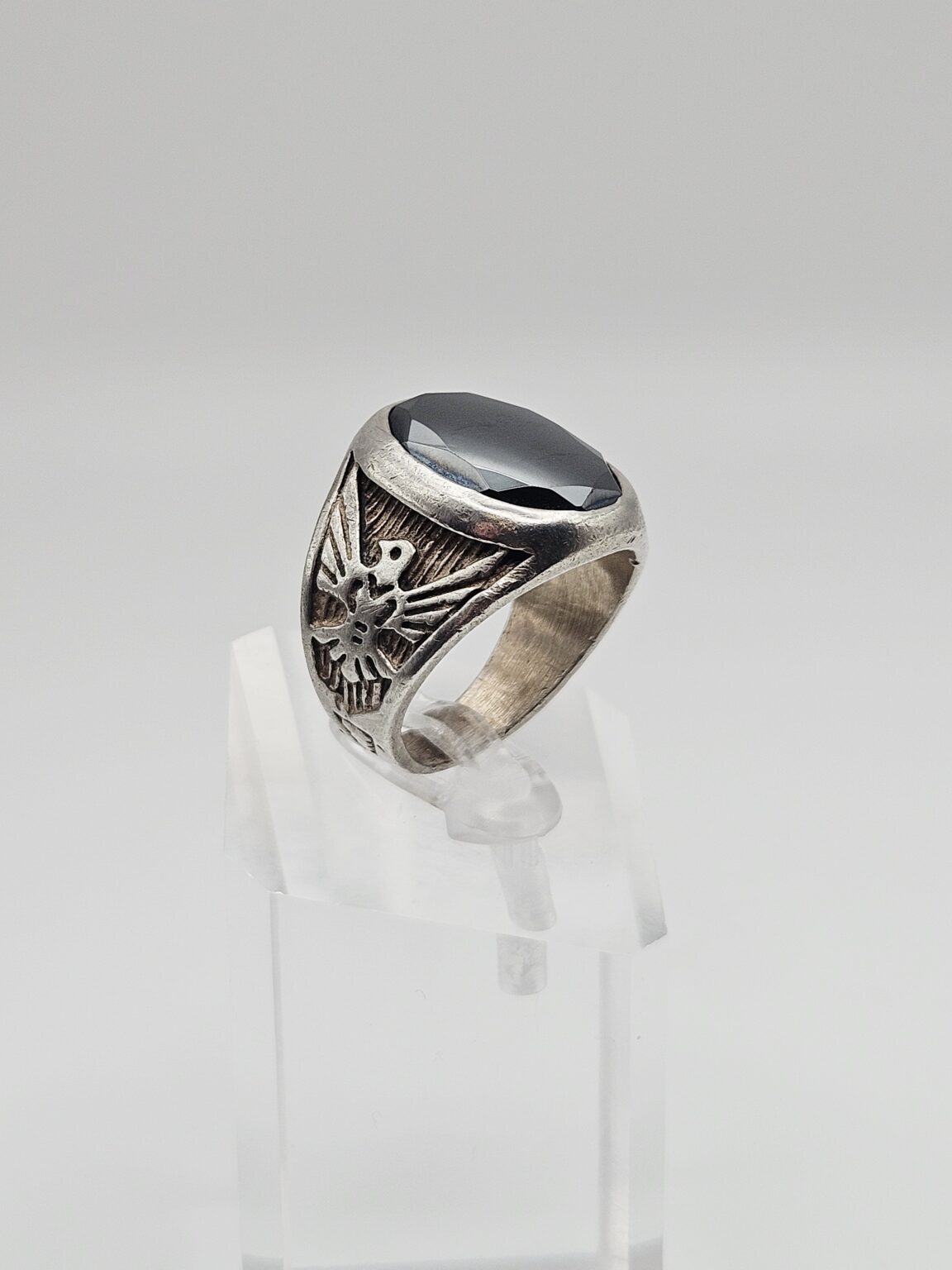 Beautiful Wheeler Manufacturing Sterling Silver Hematite Eagle Ring. Stamped WM Ster 925, 4mm band, 20mm at top.