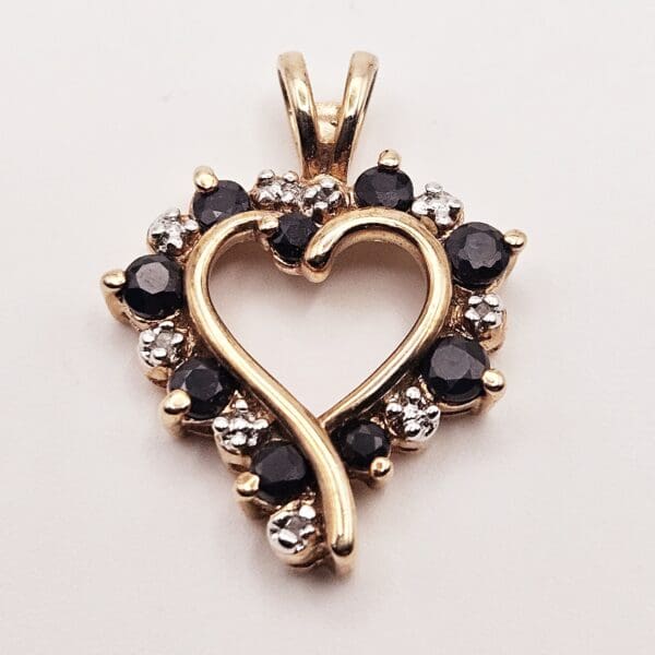 Ross Simons sterling silver vermeil genuine sapphire and diamond heart pendant